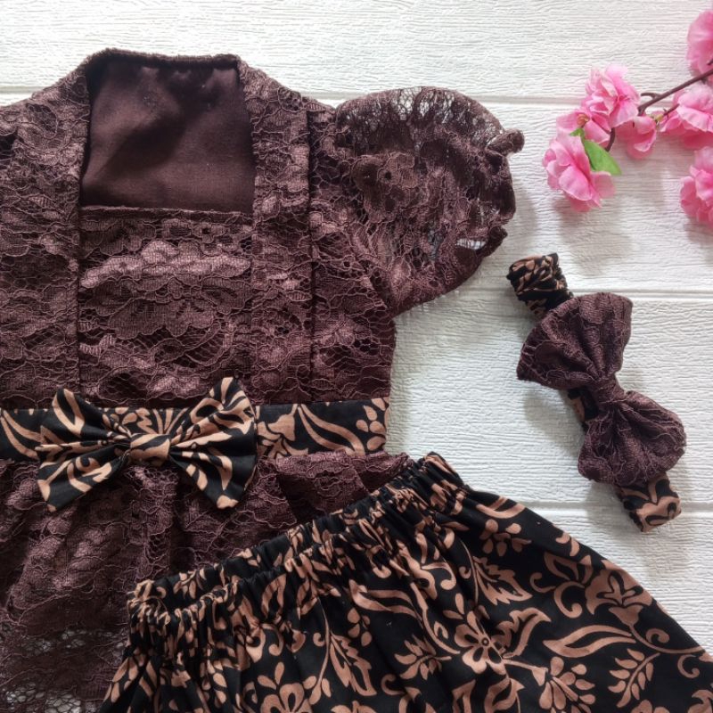 Setelan Kebaya Anak Dan Bayi Kutubaru Dark Coklat Ber Furing