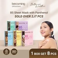 【1 BOX ONLY 50RB】becoming B5 Sheet Mask 25mili with Panthenol | Bundle Isi 8pcs 1 Box | Masker Wajah | Cairan Essence F