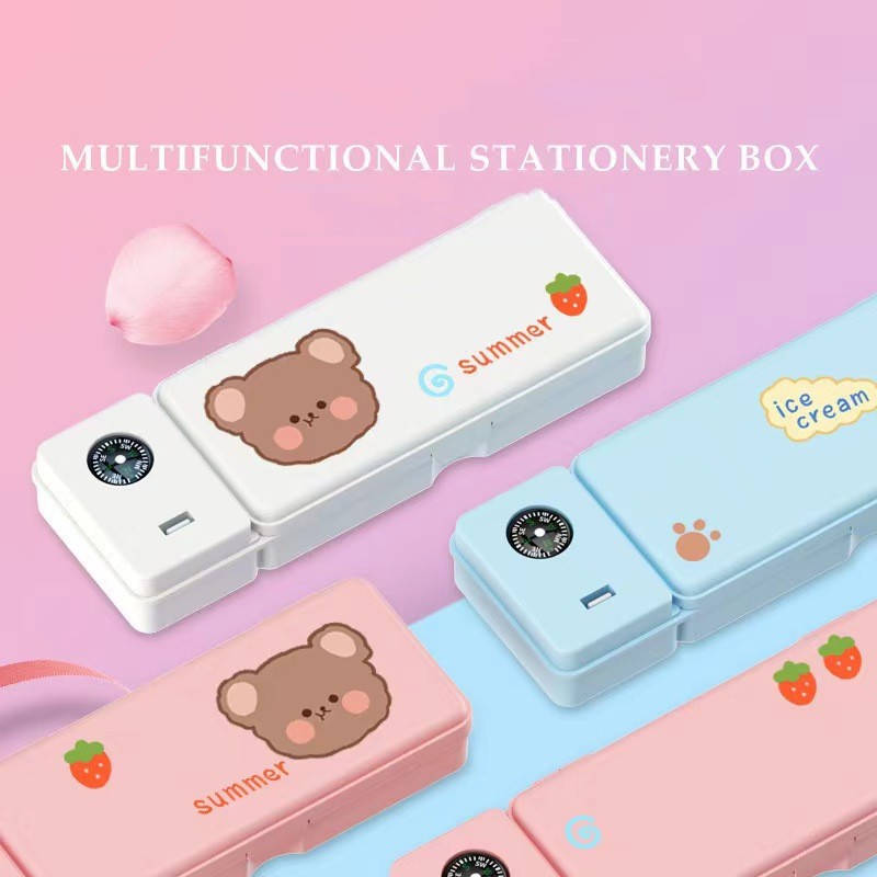 3 IN 1 Kotak Pensil Multifungsi Lampu Meja / Kipas Angin Kecil Hadiah / Tulis Kotak Penyimpanan / Siswa Sekolah Dasar D