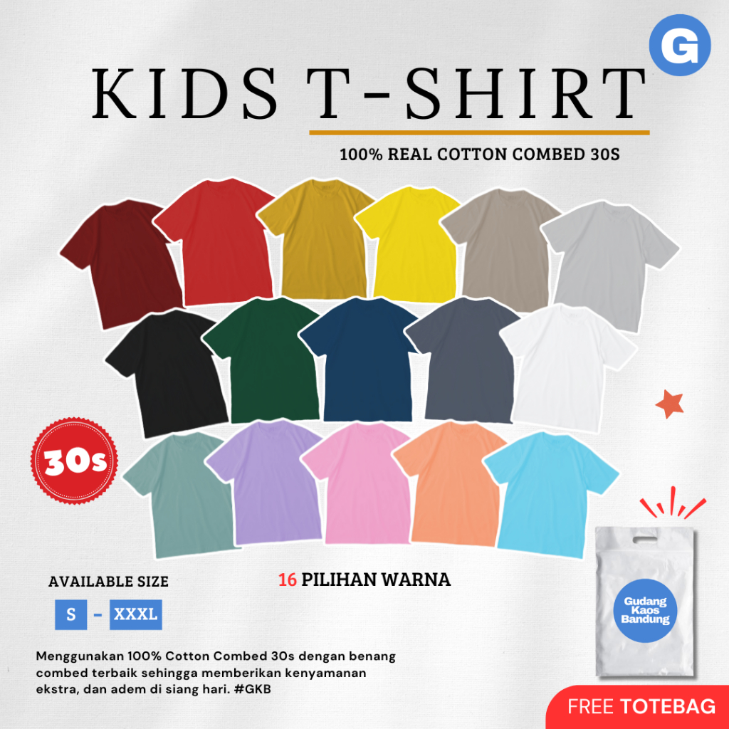 KAOS POLOS ANAK LAKI LAKI PEREMPUAN BAJU KAOS LENGAN PENDEK COMBED 30S