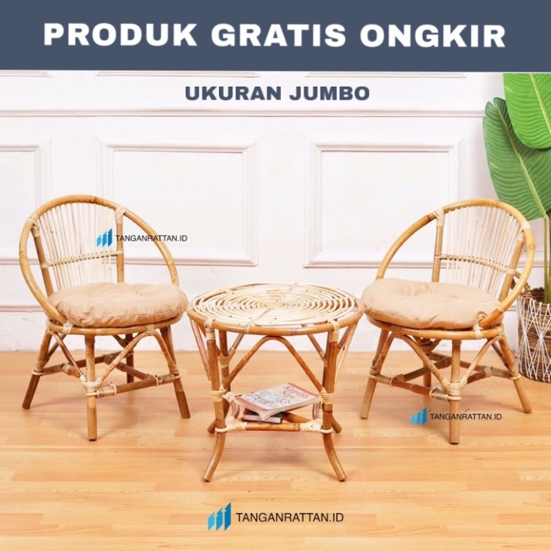 BIG SIZE - KURSI TERAS MOMON ROTAN UKURAN BESAR DAN MEJA 1 SET BANTAL / KURSI TERAS TAMU ROTAN ASLI FINISHING