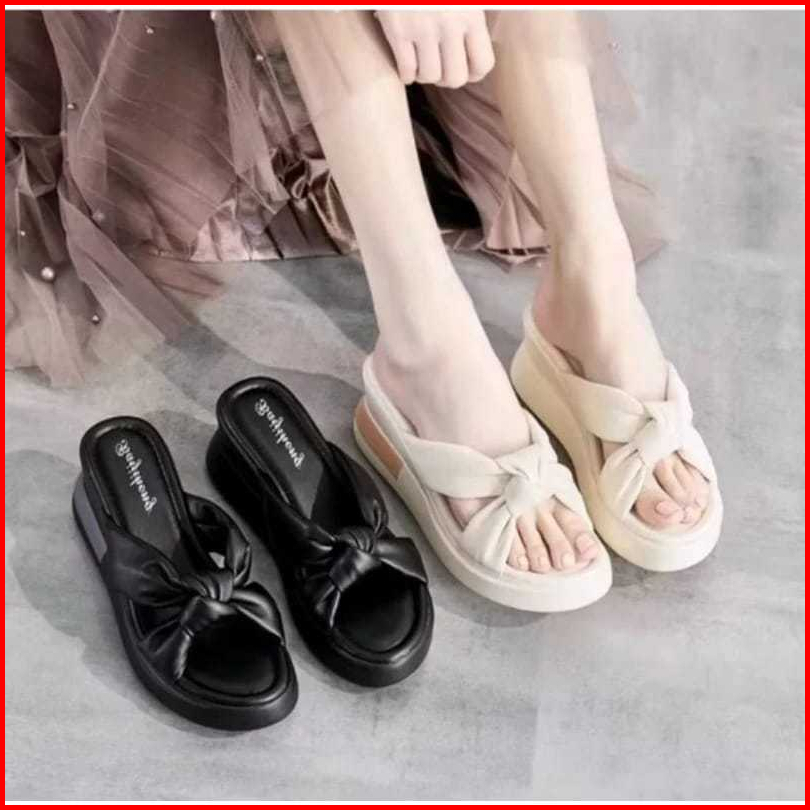 Sandal Wanita Slop Slip On Terbaru Sandal Wanita Model Korean Style Terlaris Sandal Wedges Wanita Kekinian 2024