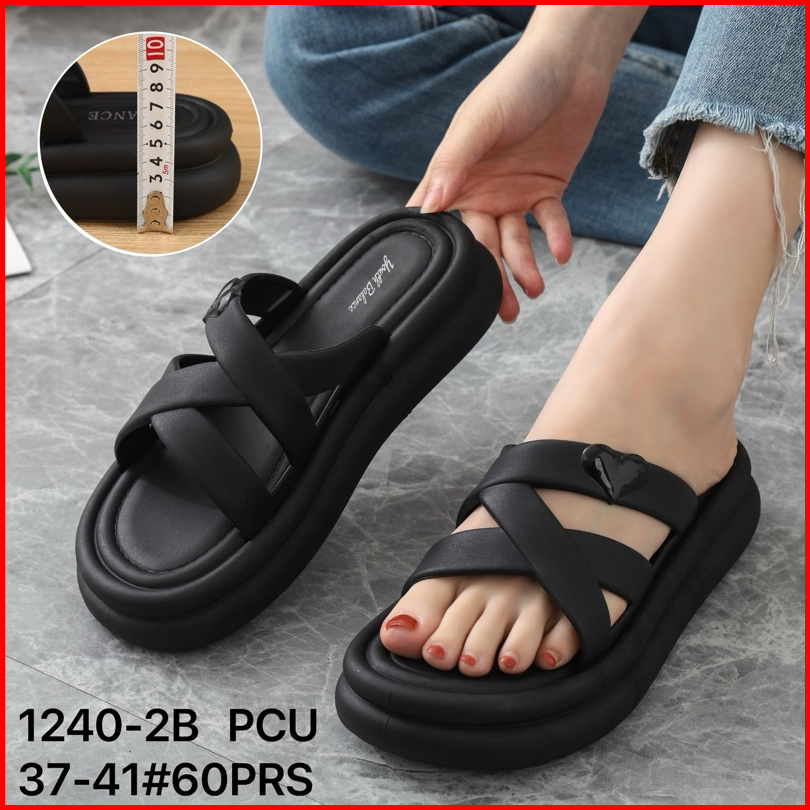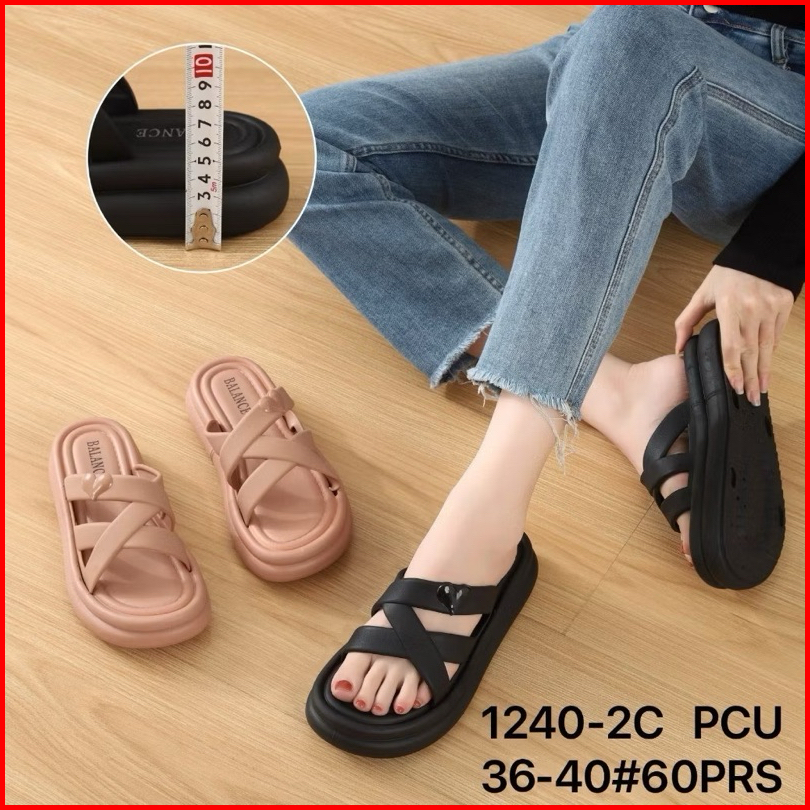 Sandal Selop Wanita Karet Import Balance Motif Silang Sol Tebal 5cm 1240-2a