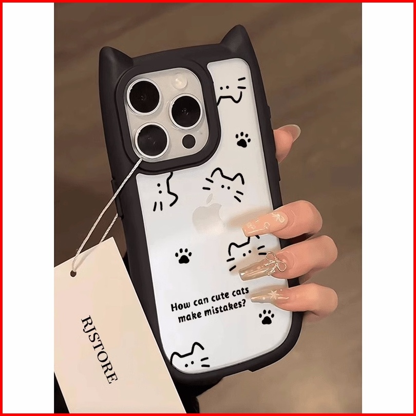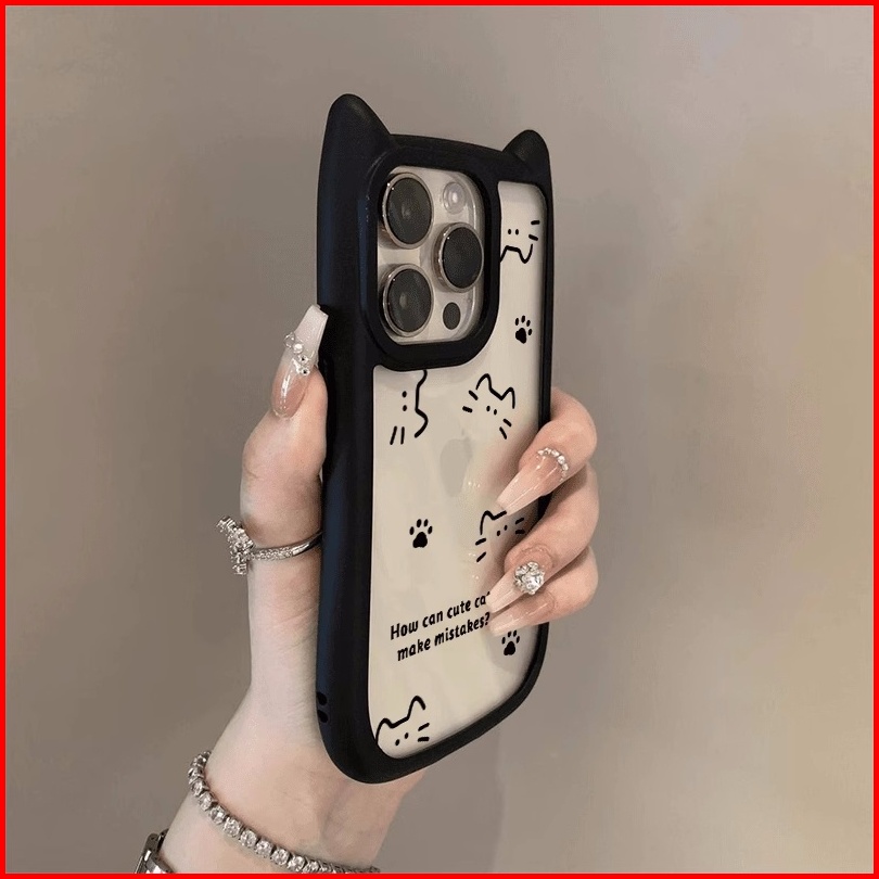 Case Iphone 15 Kucing Lucu Telinga Kucing Tiga Dimensi Casing Ponsel Cocok Untuk Iphone 11 Softcase Macaron 12 13 14 15