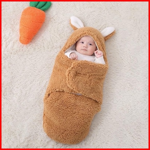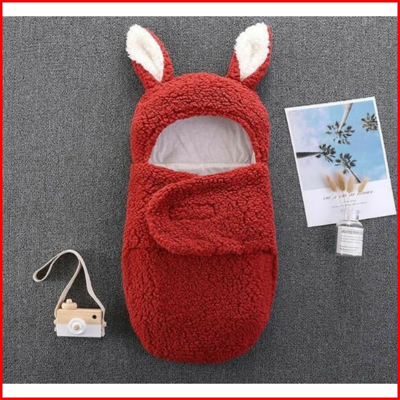 Selimut Bedong Bayi Bulu Lembut Tebal Blanket Karakter Kelinci Baru Lahir 0-6 Bulan