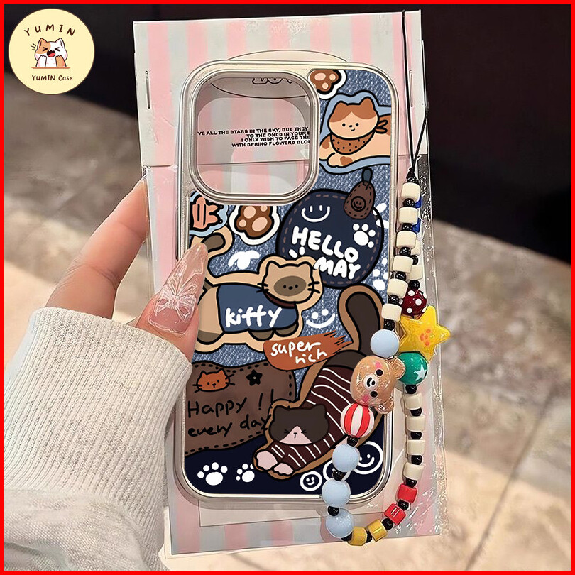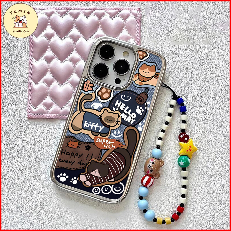 Casing Kucing Kartun Lucu Retro Kompatibel Untuk Iphone 11 13 15 14 12 Pro Max 7 15 14 8 Plus Xr Xs X Max Se 2020 Bingka