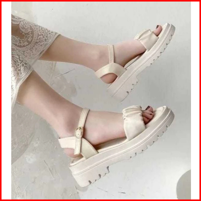 Sandal Wanita Lovely Terbaru Sandal Wanita Tali Kerut Style Wedges Hits Kekinian