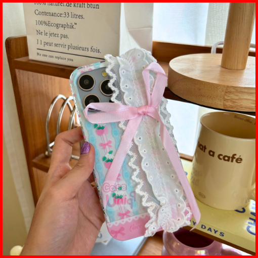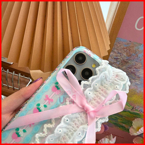 Caseuniqq Case Renda Pita Pink Blue Coquette Compatible With Iphone 15 Hardcase