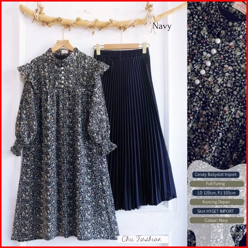 Setelan Tunik Ceruty Babydoll Jumbo Tunik Ceruty Jumbo Rok Jumbo Jovita Set Setelan Tunik Plisket