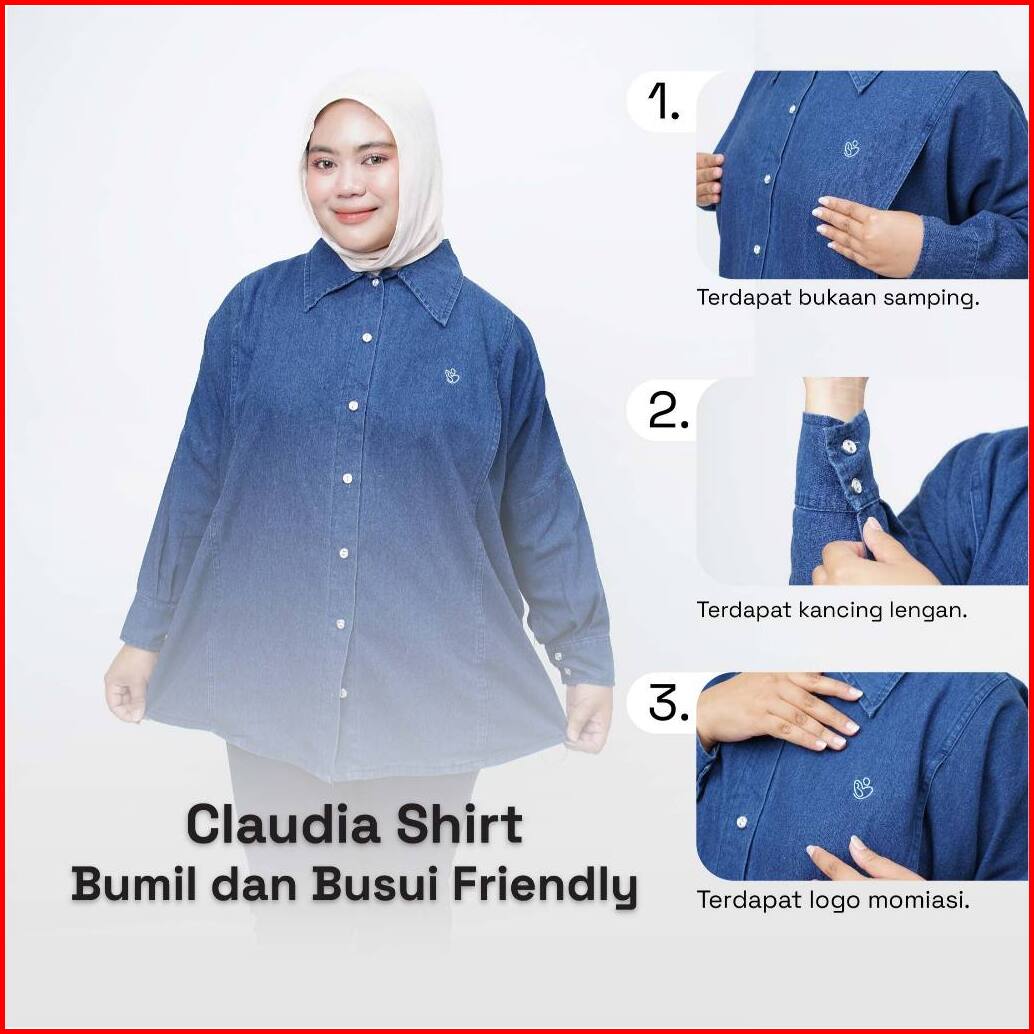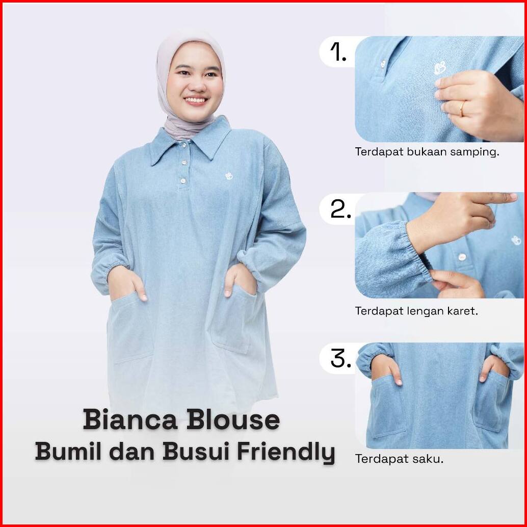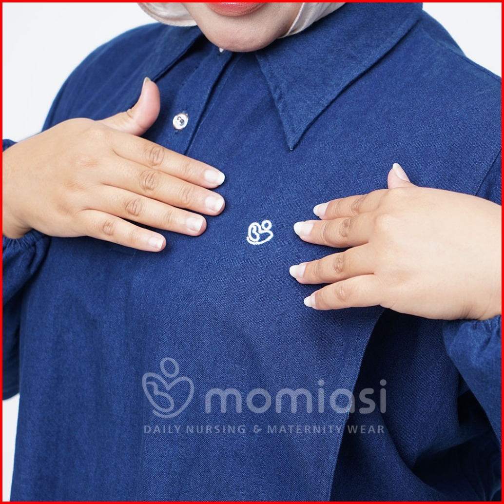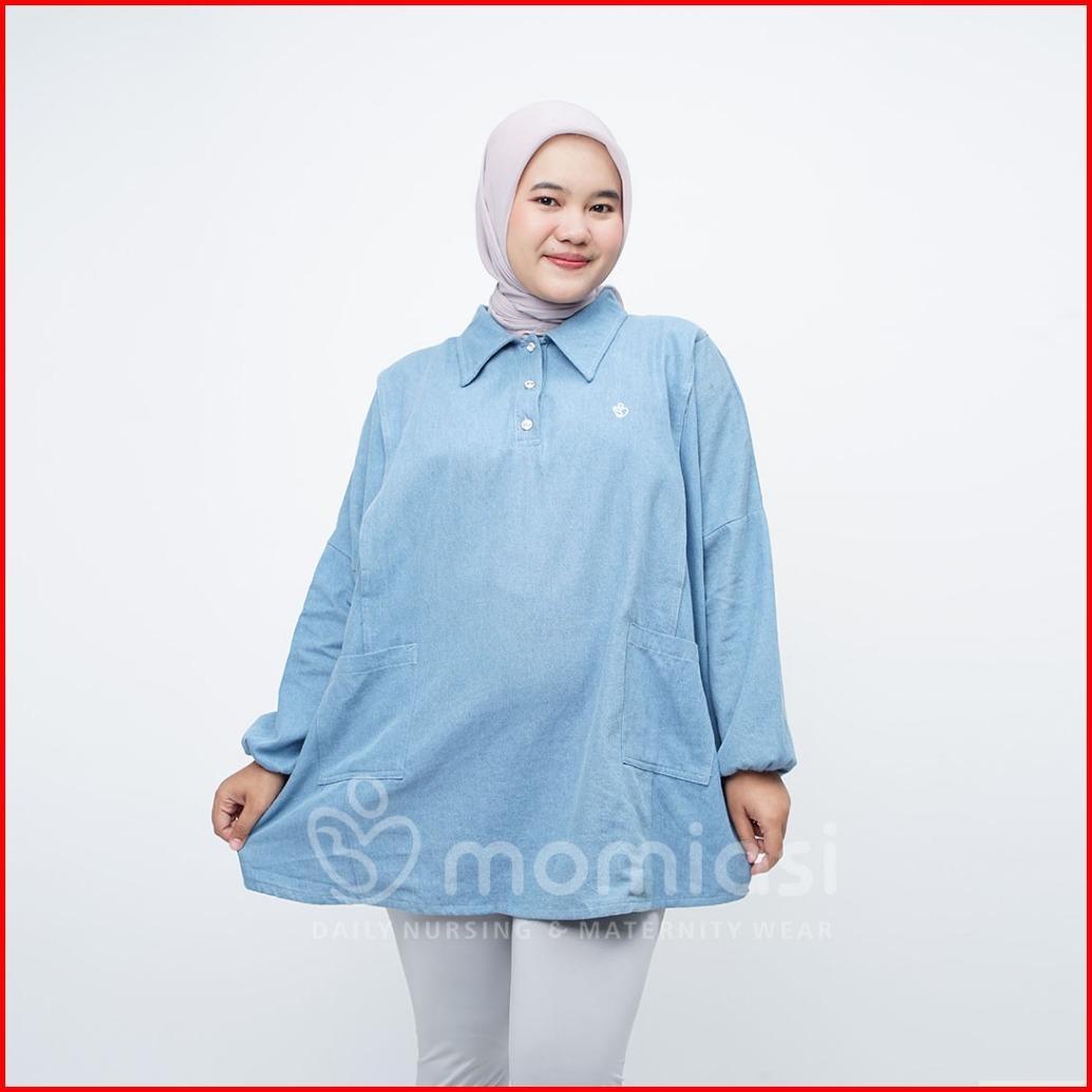 Momiasi - Bianca - Claudia Blouse Denim Premium - Atasan Wanita Kekinian - Bumil Busui Friendly