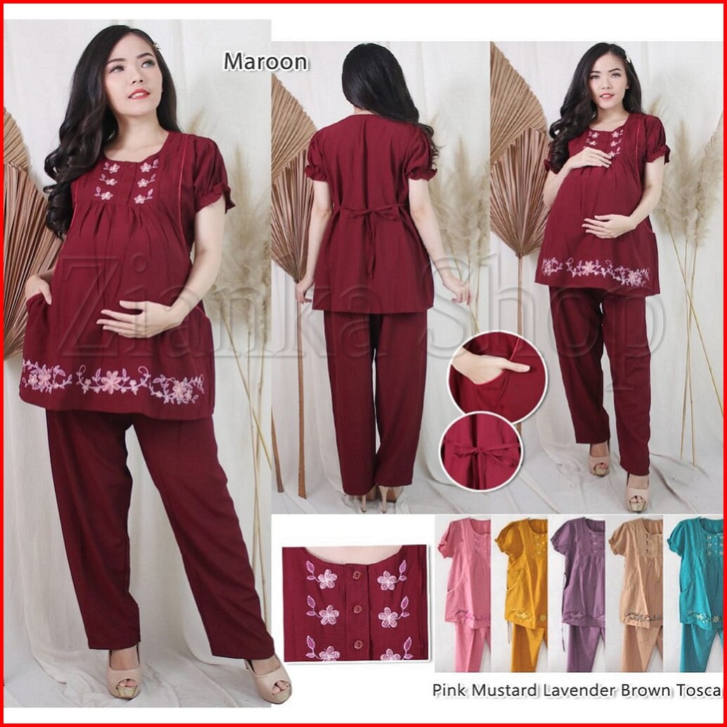 Setelan Cp Hamil Motif Bunga Berbahan Viscose 05 - Zianka Shop