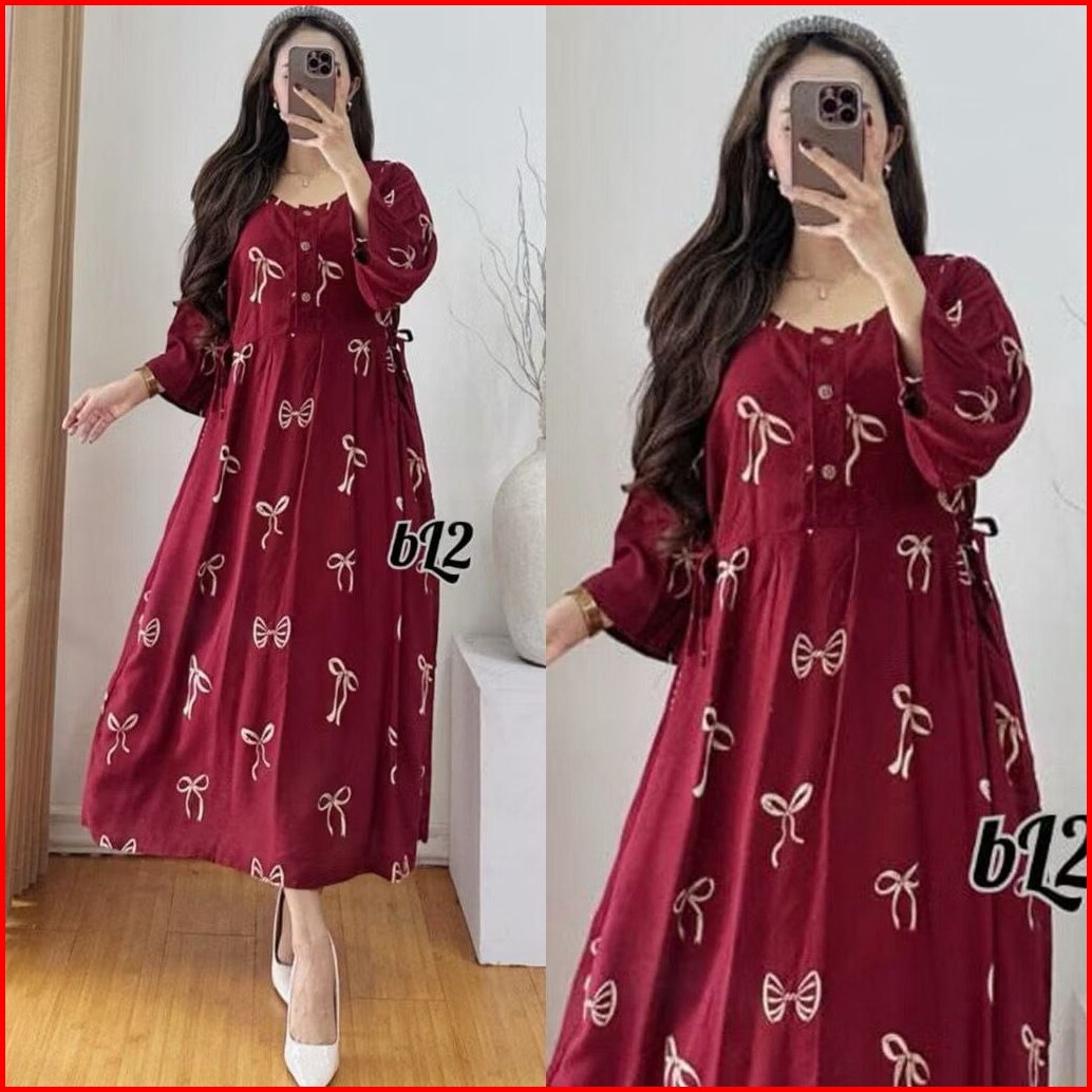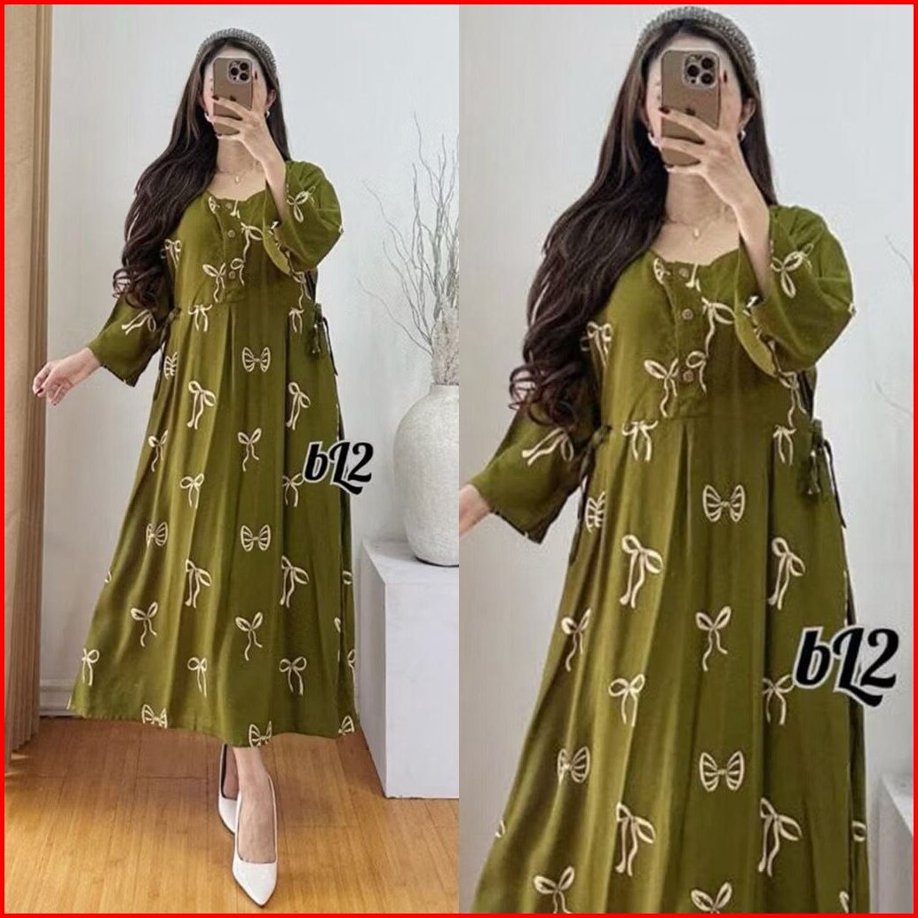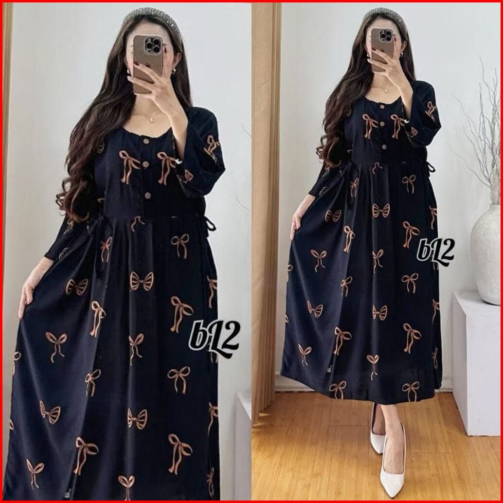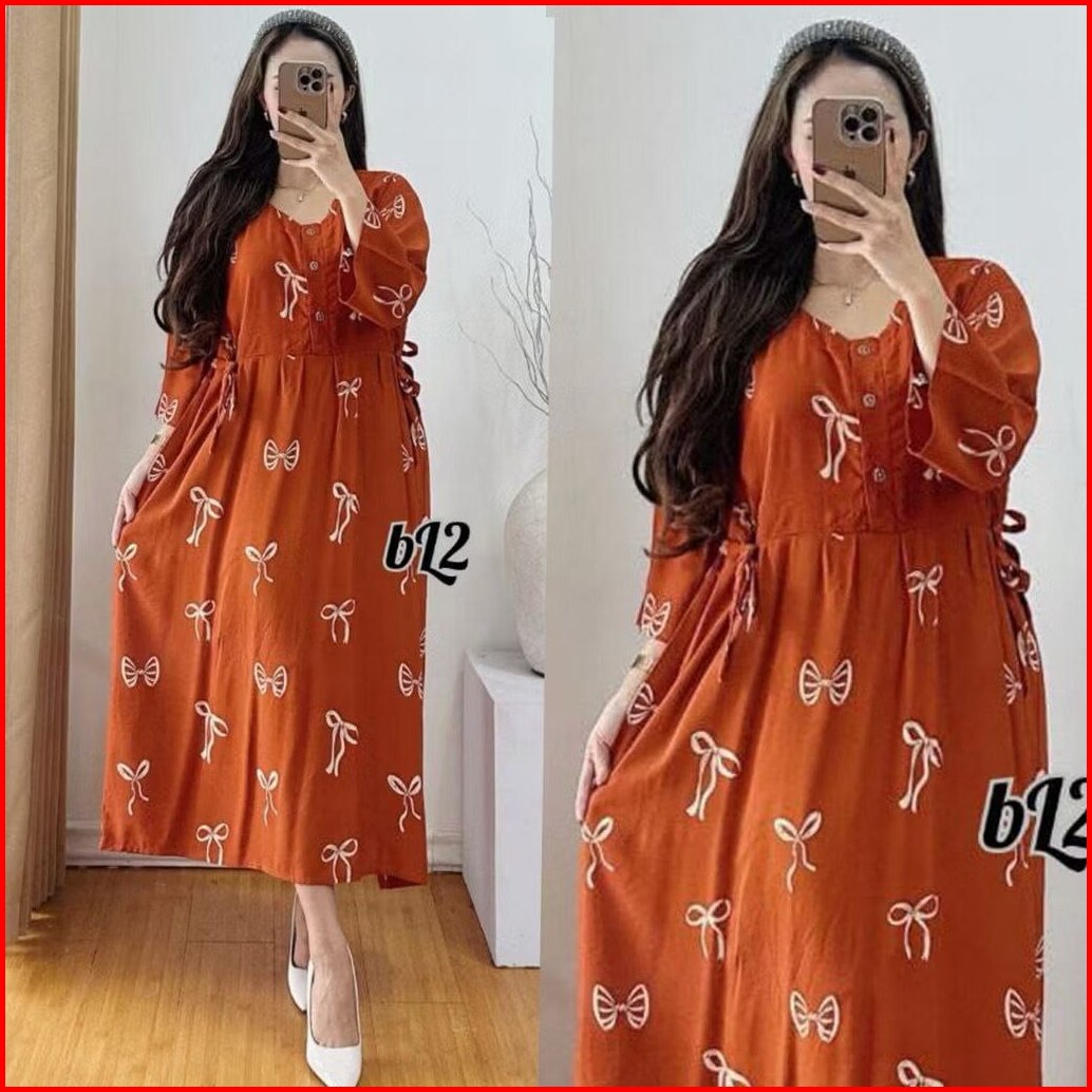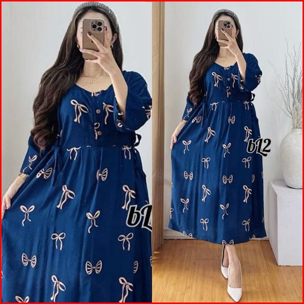 Daster Motif Pita Lengen 3 4 - Dress Cibi Jumbo Kancing Depan Ld 120 Bisa Untuk Bumil Dan Busui - Gaun Ibu Ibu