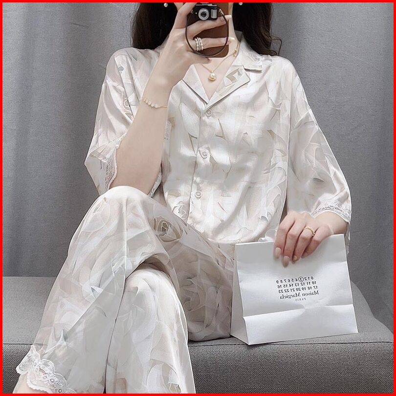Baju Setelan Piyama Tidur Wanita Kekinian Renda Satin Motif Bunga Pakaian Rumah Wanita Korea Style Terbaru 2025