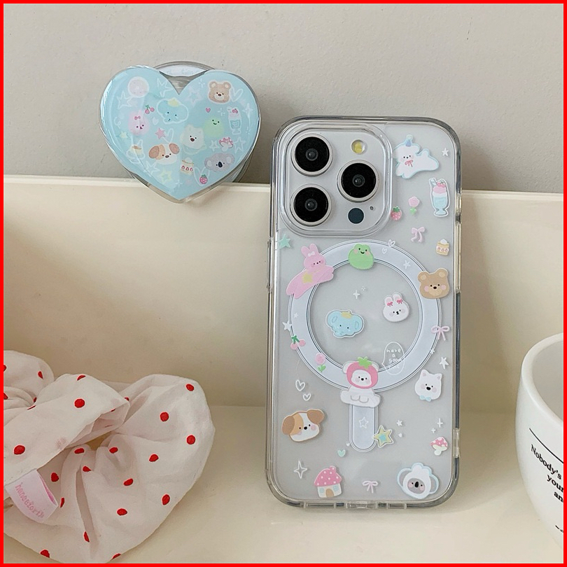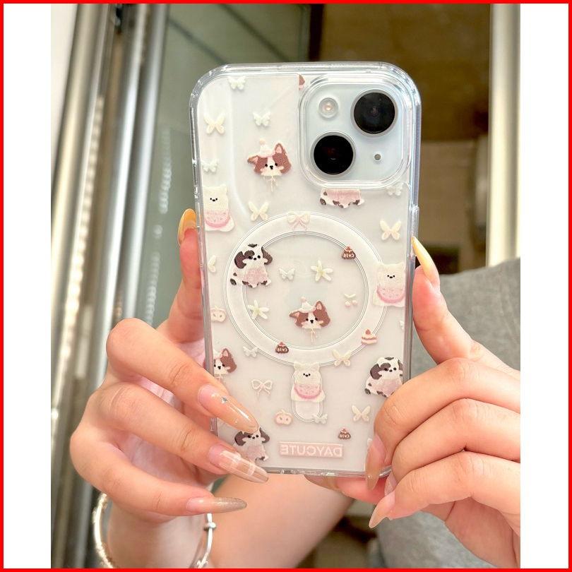 Animal Pita Puppy Flower Magsafe Case Iphone X Xr Xs 11 12 13 14 15 16 Pro Max 14 Plus 15 16 16e Plus Cute Elegan Mewah