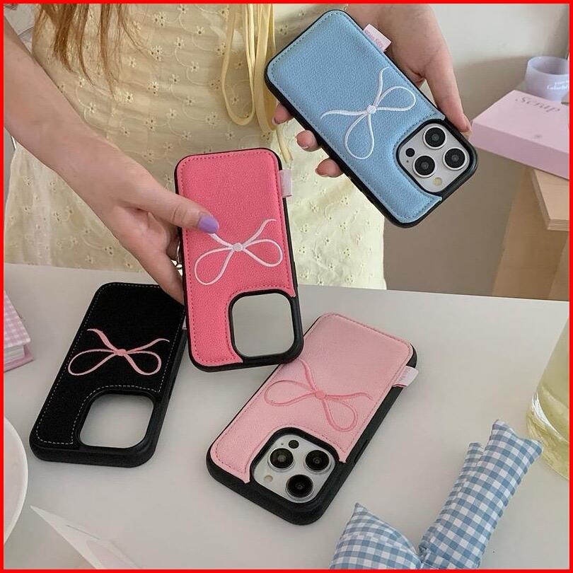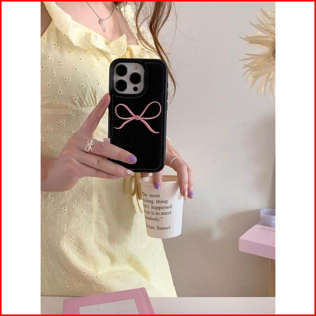Tpc New Coquette Ribbon Puffy Leather Case Embroidered Bow Ribbon Design Aesthetic Mobile Phone Case Suitable For Iphone