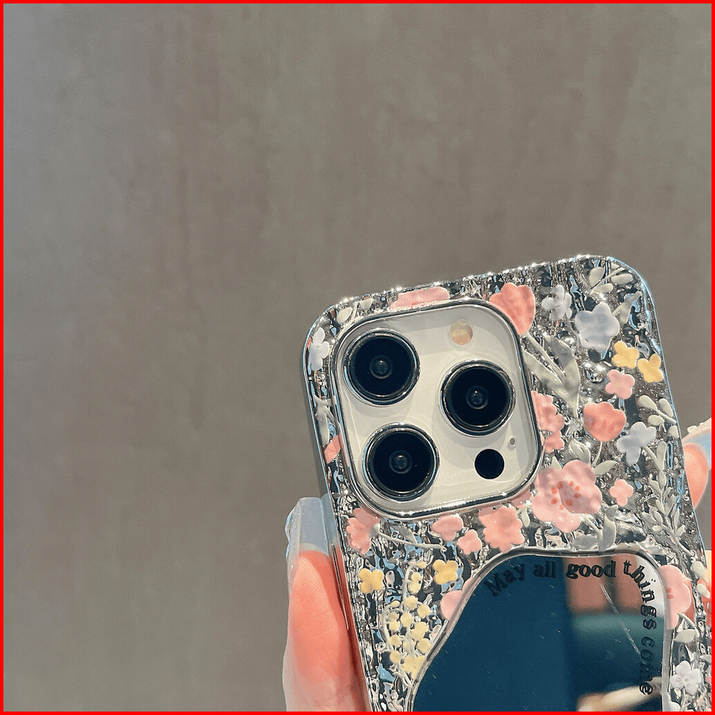 Case Mirror Flower Cassing Lucu Softcase Hologram For Iphone 11 Promax 12 Pro 13 Pro Max 14 Plus Pro Max 15 Plus Pro Max