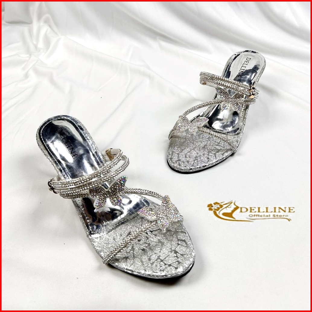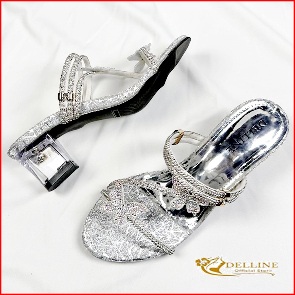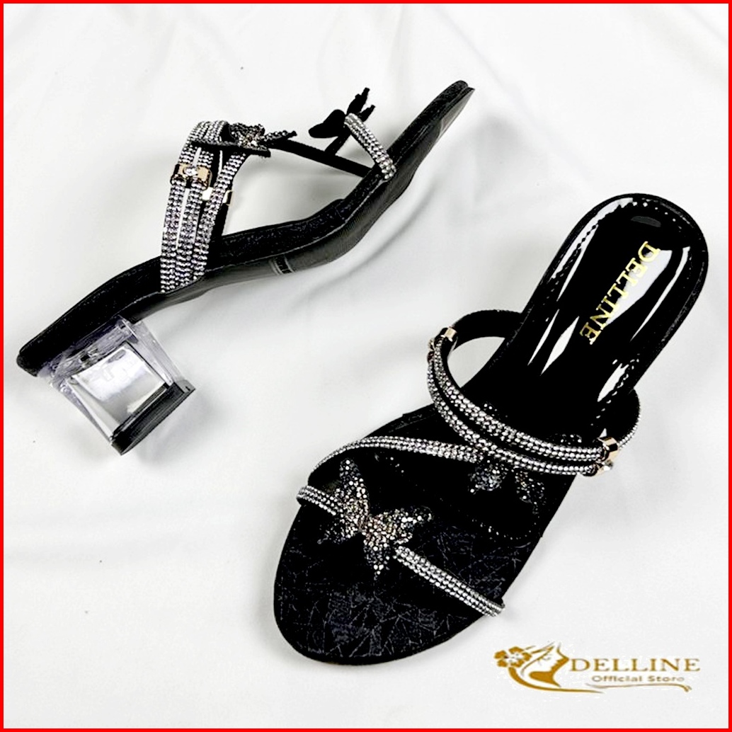 Ovhel Store Delline Sendal Wanita Hak Kaca 5 Cm Variasi Kupu Kupu Wr-03