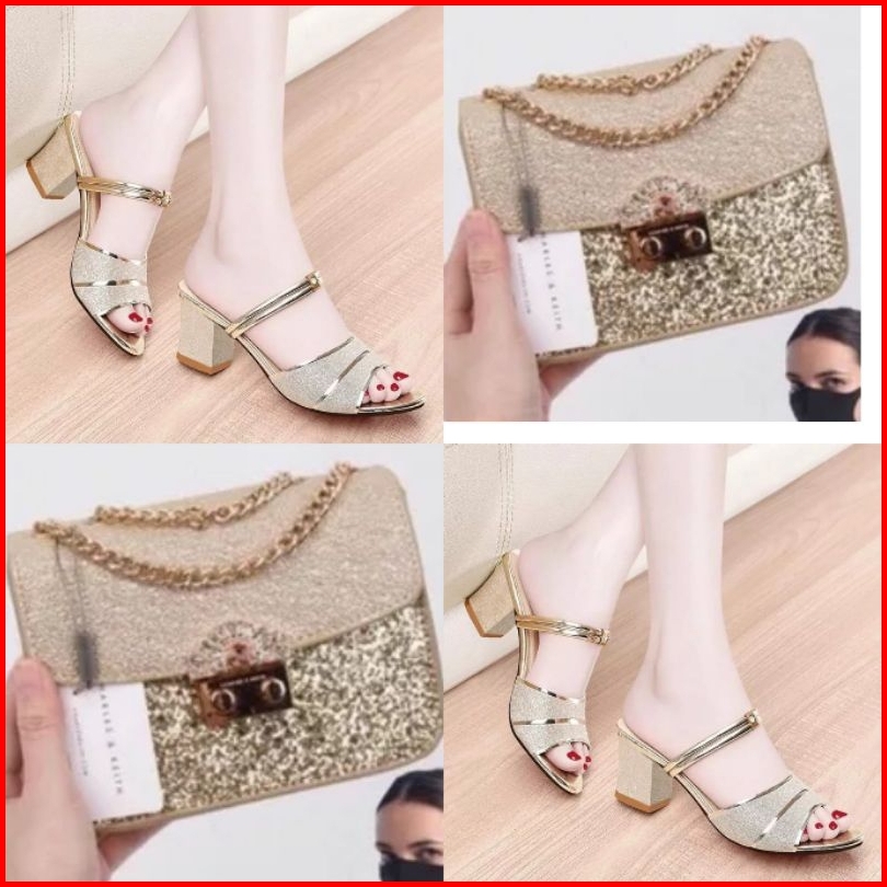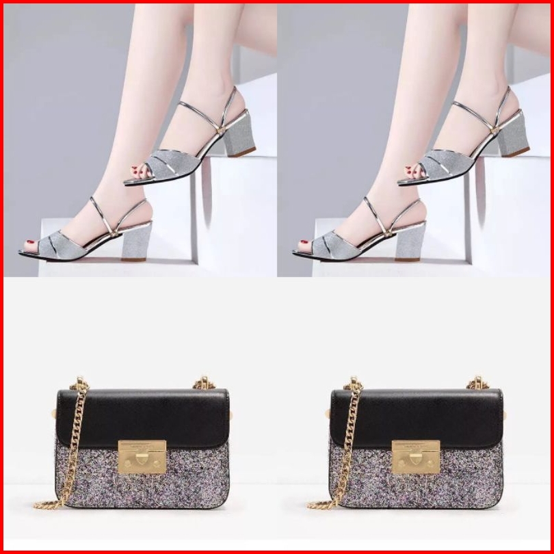 Paket 2in1 Sandal Wanita Sandal Tali Heels Premium Dan Tas Selempang Wanita Ainara