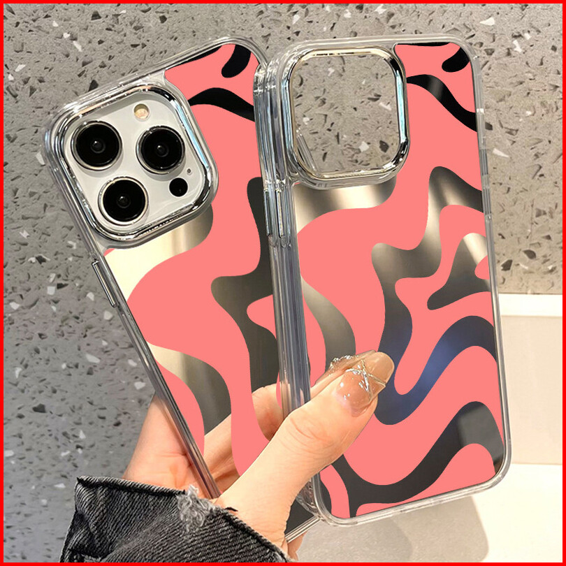 Garis Bergelombang Merah Muda Case Untuk Iphone 16 11 15 14 13 12 Pro Max Shock-proof Hard Anti Crack Case Fiber Acrylic