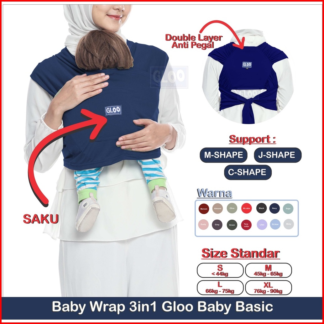 Gendongan Bayi Depan M Shape Baby Wrap 3in1 Gloo Baby