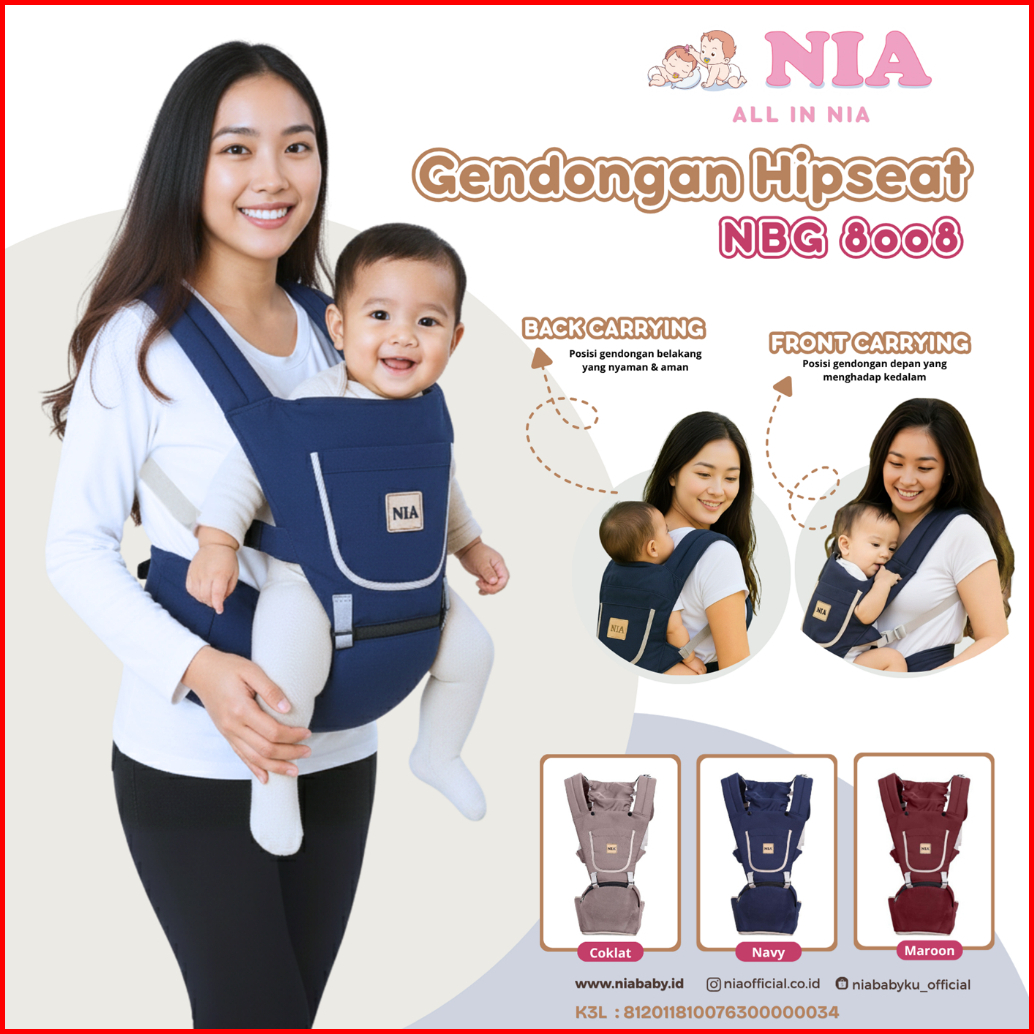 Gendongan Bayi Nia Hipseat Baby Carrier Depan Belakang Nbg 8008 Warna Polos