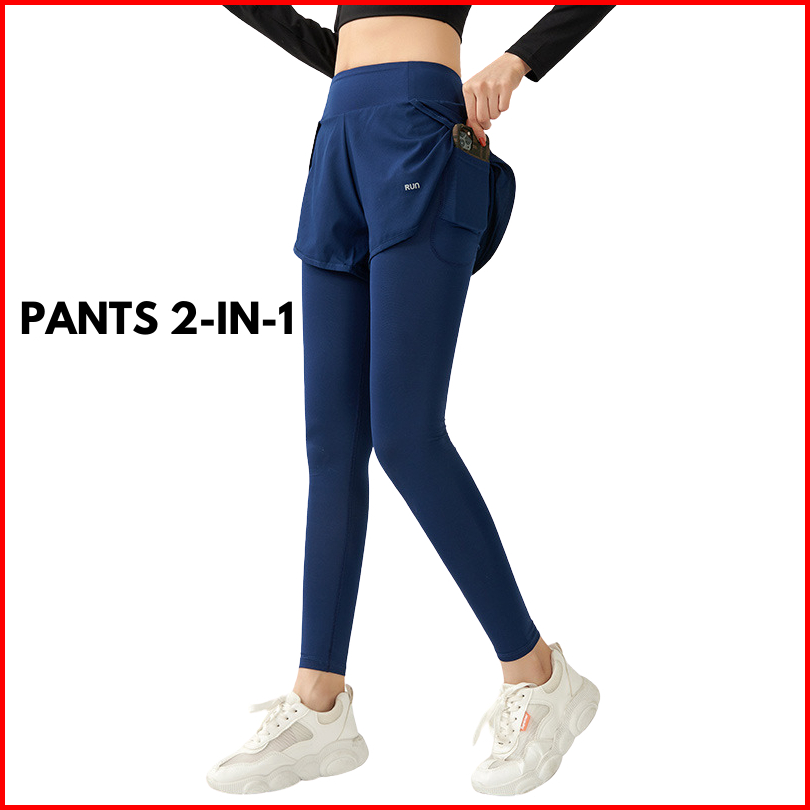 Fitly 1110 Celana Olahraga Wanita Legging Olahraga Celana Jogger Sport Dua Lapisan 2 In 1 Gym Running