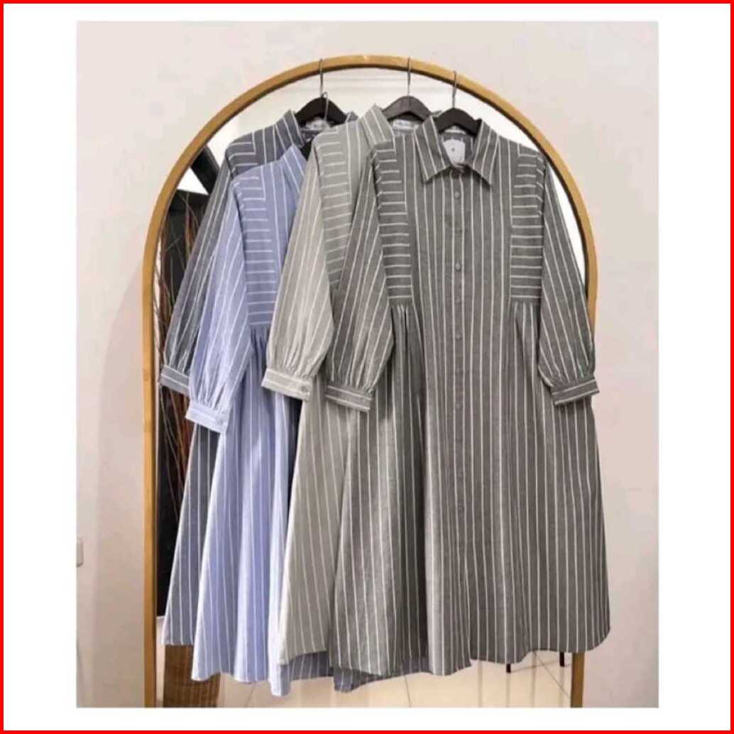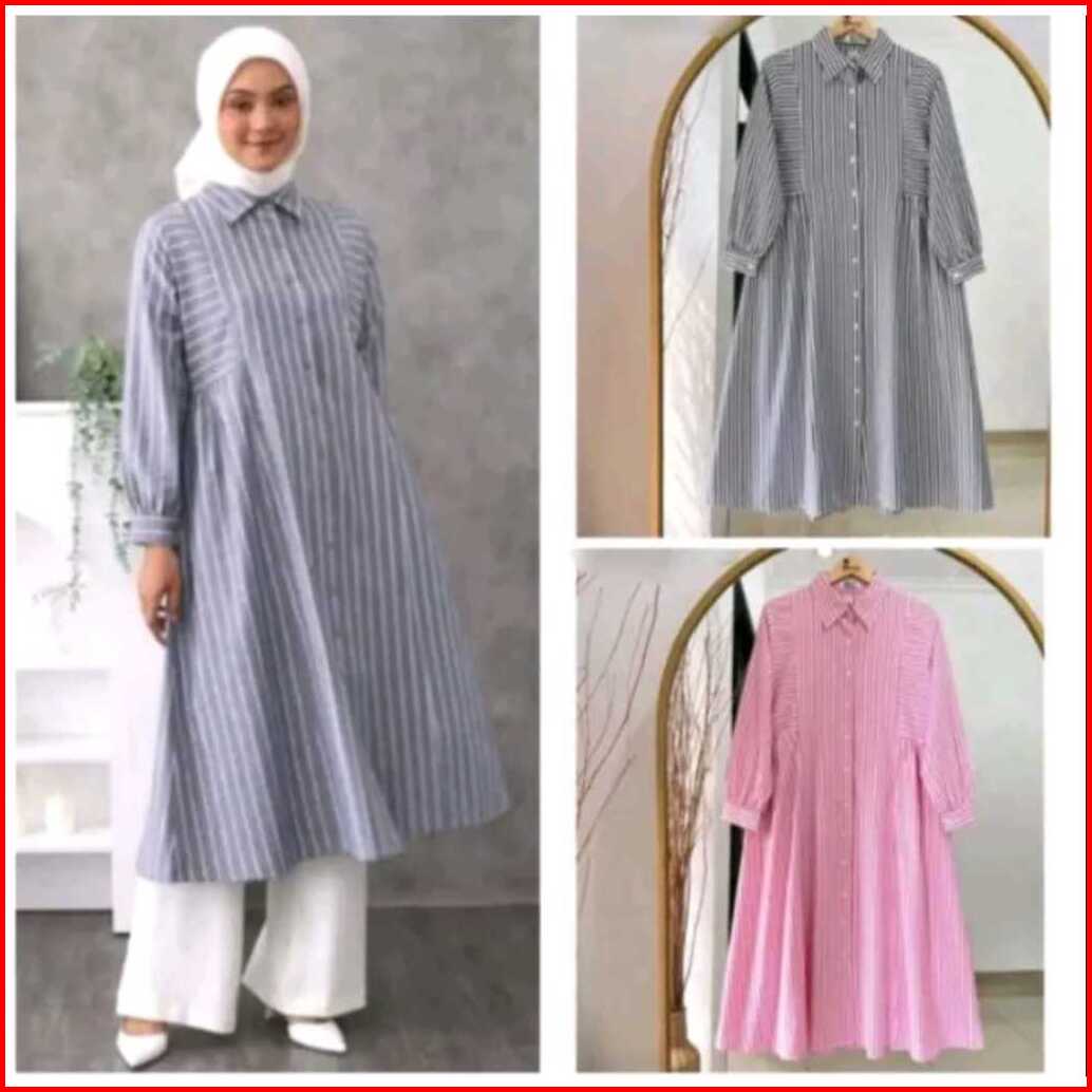 Tunic Wanita Motif Garis-garis Kemeja Tunik Wanita Terbaru Tunik Dewasa Jumbo Terlaris Tunik