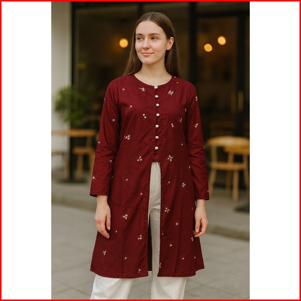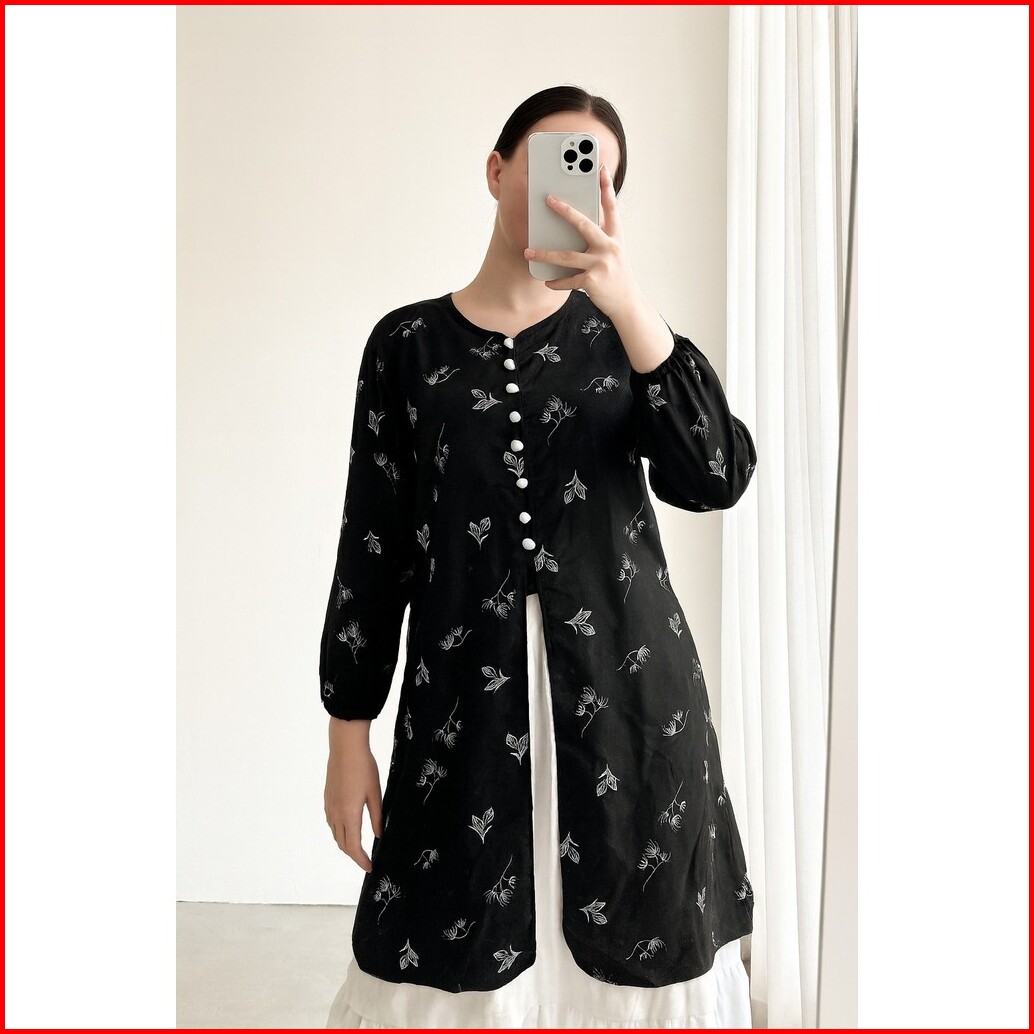 Atasan Sabila Slit Tunik Katun Motif Fit To L
