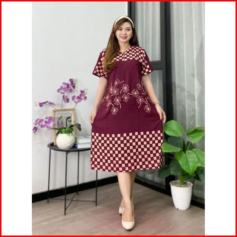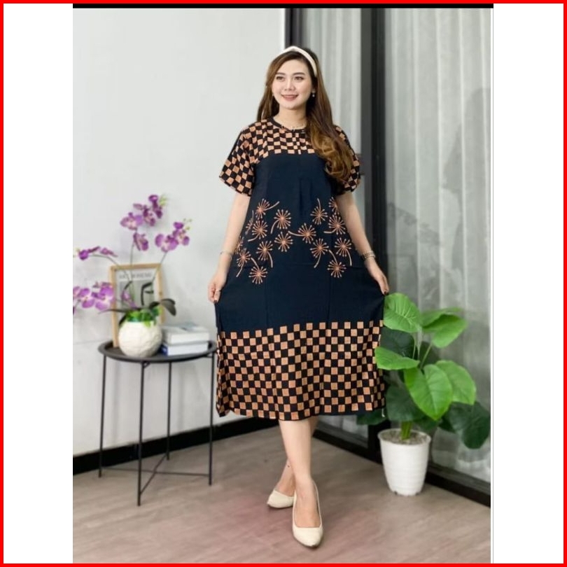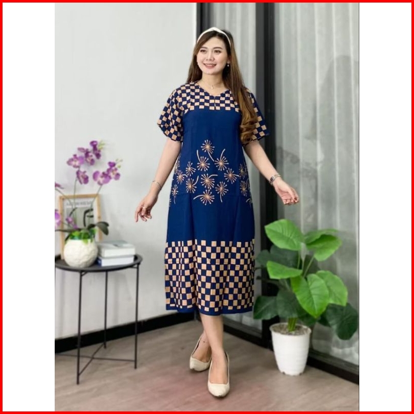 Daster Rayon Jumbo Lengan Pendek Resleting Depan Busui Motif Terbaru