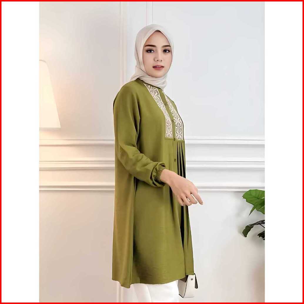 Diva Tunic By. Affa Fashion - Tunik Polos Wanita Bordir Linen Crinkle Premium