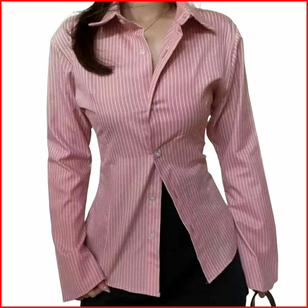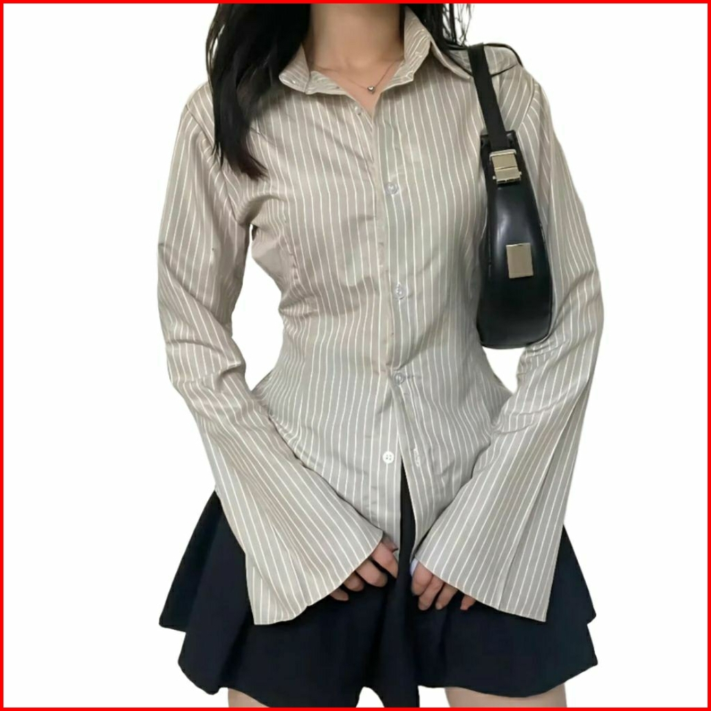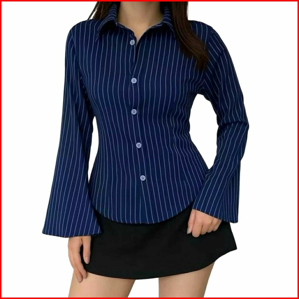 Atasan Kemeja Whispie Motif Salur Kemeja Salur Model Lengan Trompet Kemeja Model Terbaru Dan Kekinian