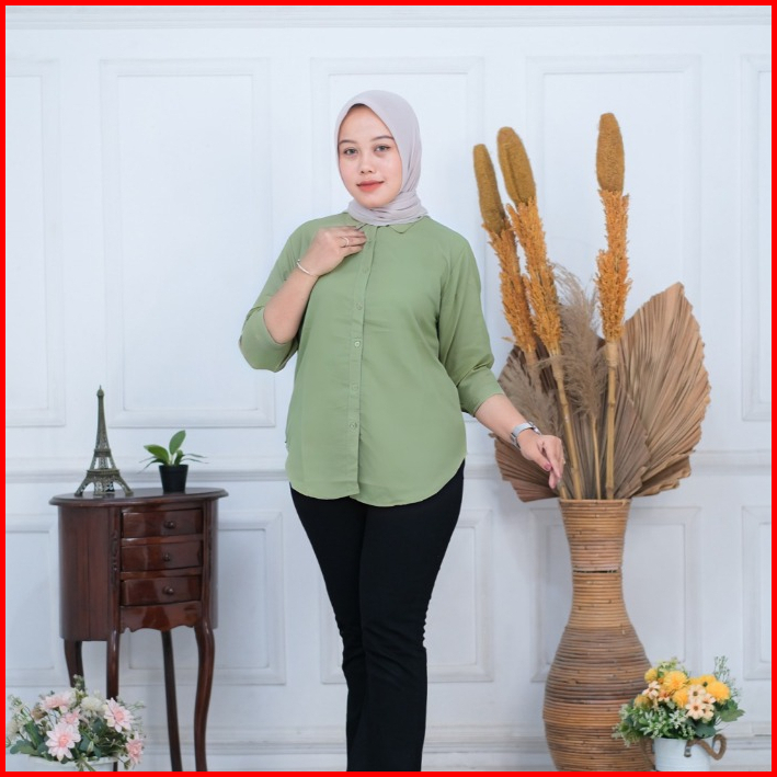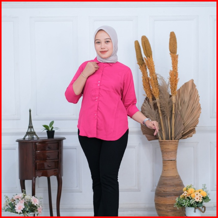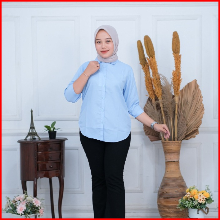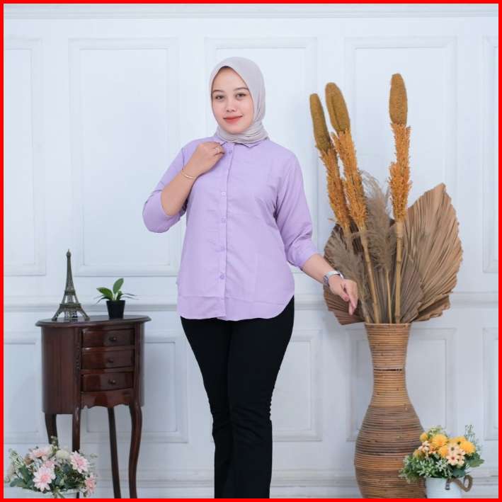Kemeja Wanita Polos Lengan 3 4 Atasan Kemeja Wanita Lengan Tiga Perempat Kekinian Korean Style