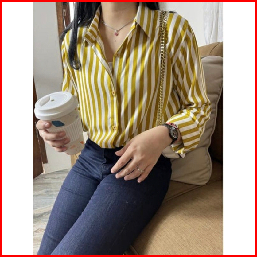 Kemeja Salur Wanita Kemeja Korea Lengan Panjang Kemeja Wanita Import