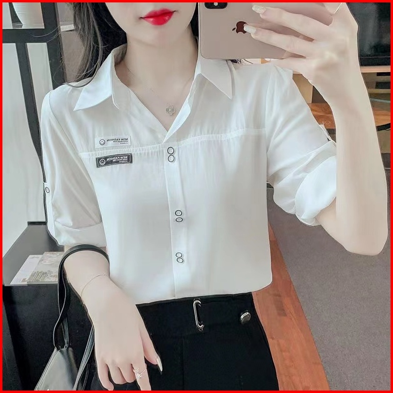Tujuh -titik Lengan Sejung Lengan Wanita Top Serbaguna Mode New