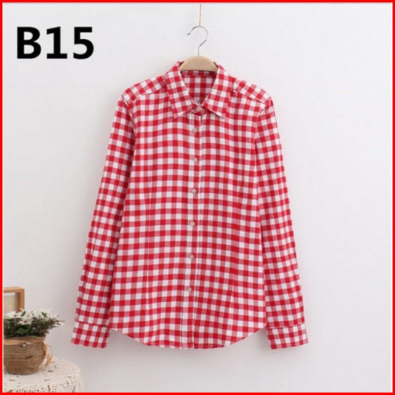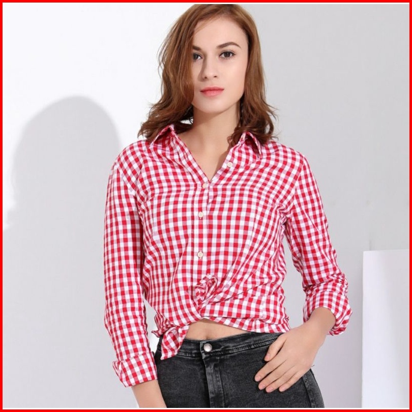 Gsl Kemeja Merah Putih Agustusan Wanita Kemerdekaan Kotak 1 Cm Lengan Panjang Basic Casual Korea Style Blouse Atasan Kot