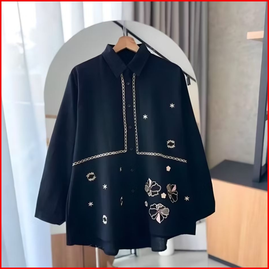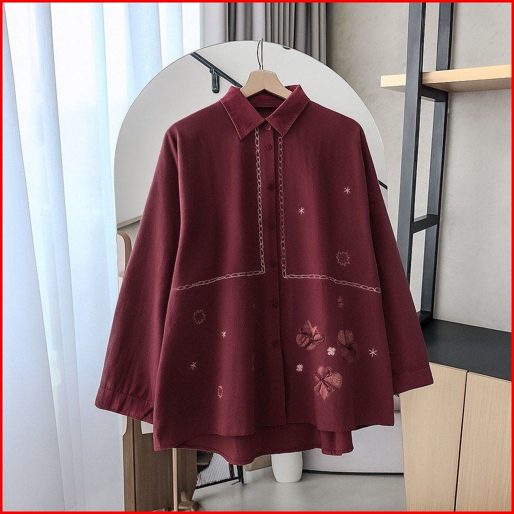 Jenie Kemeja Bordir Blouse Korean Style Atasan Wanita Lengan Panjang Rayon Twill