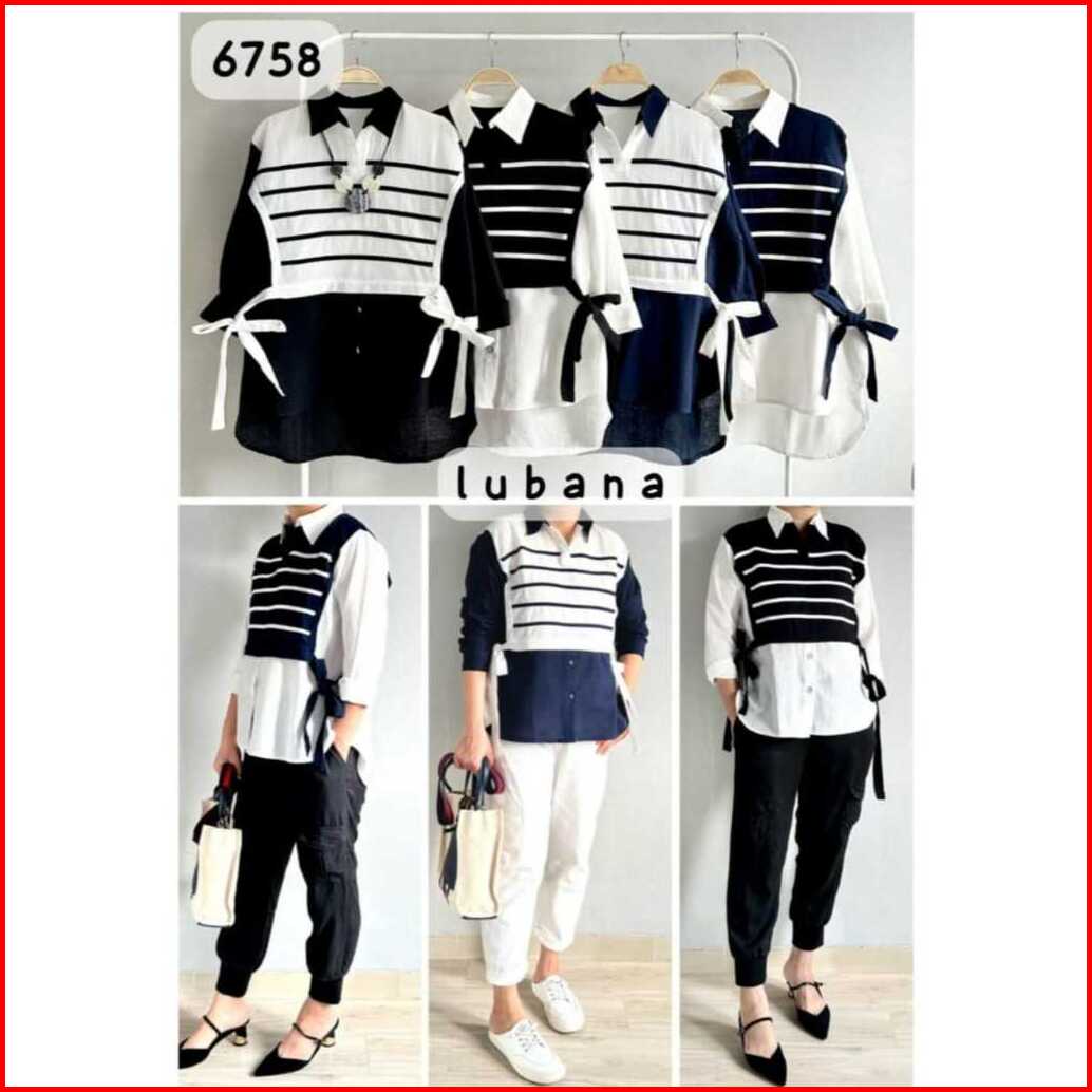 Sweet Woman Kemeja Korean Style Bahan Katun Linen Premium Fashion Wanita Manis Korea Kekinian Lengan Panjang 6758