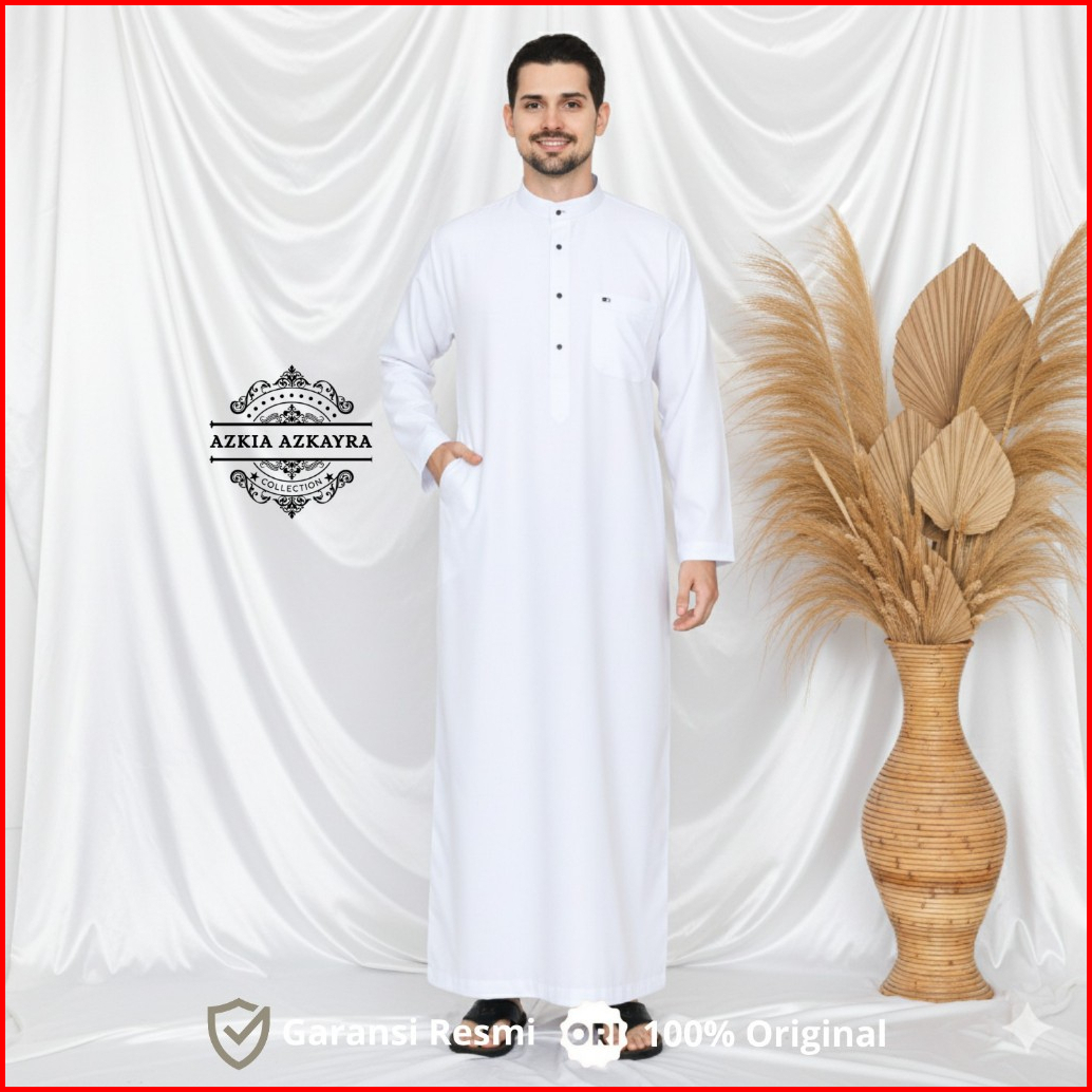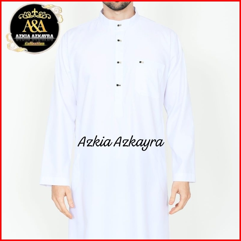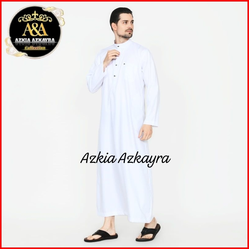 Jubah Gamis Pria Saudi Basic Thobe Jubbah Baju Muslim Polos Dewasa Lengan Panjang Putih Haji Umroh