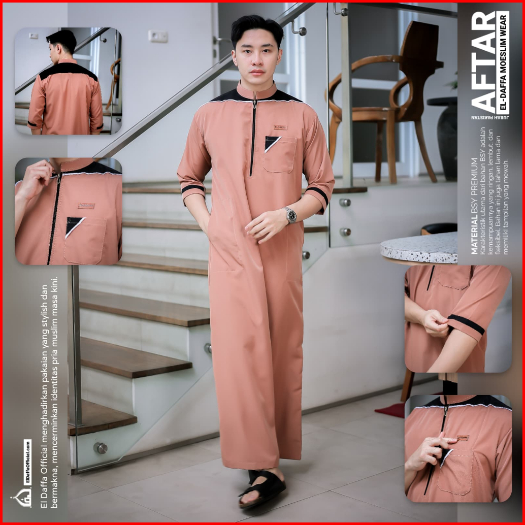 Jubah Gamis Pria Aftar Original By Eldaffa - Baju Muslim Pria