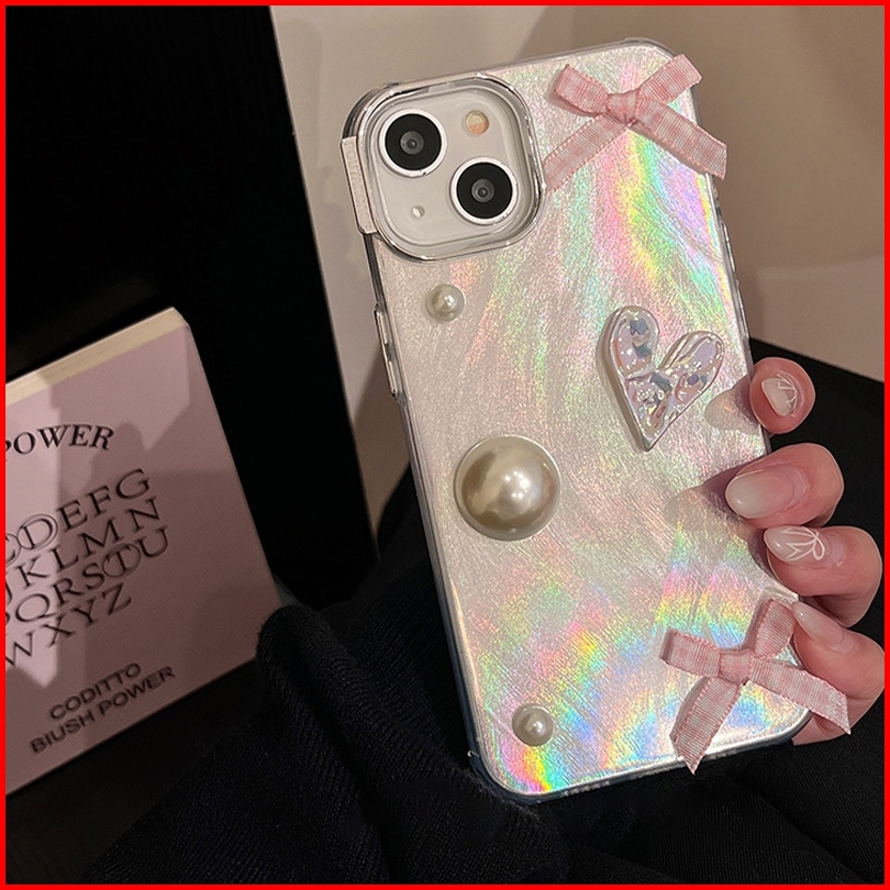 Casing Hologram Bulu Penuh Pita Kupu-kupu Hati For Iphone X Xs Xr Xsmax 11 12 13 14 15 Plus Pro Max-fe