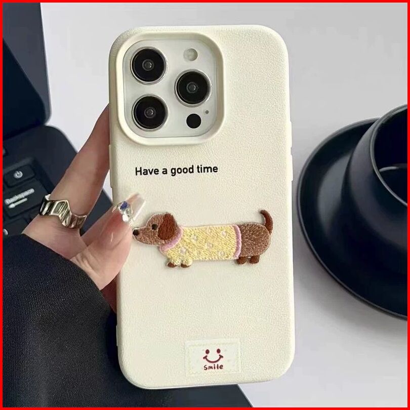 Tpc New Simple Case With 3d Sticker Doggy For Iphone 11 12 13 14 15 16 Pro Plus Promax - Ip161