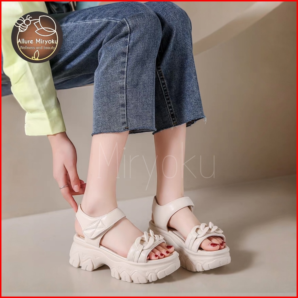 New Arrival Diy-sandal Wanita Korea Wedges Sendal Jelly Tebal Rantai Curly Permium Terbaru