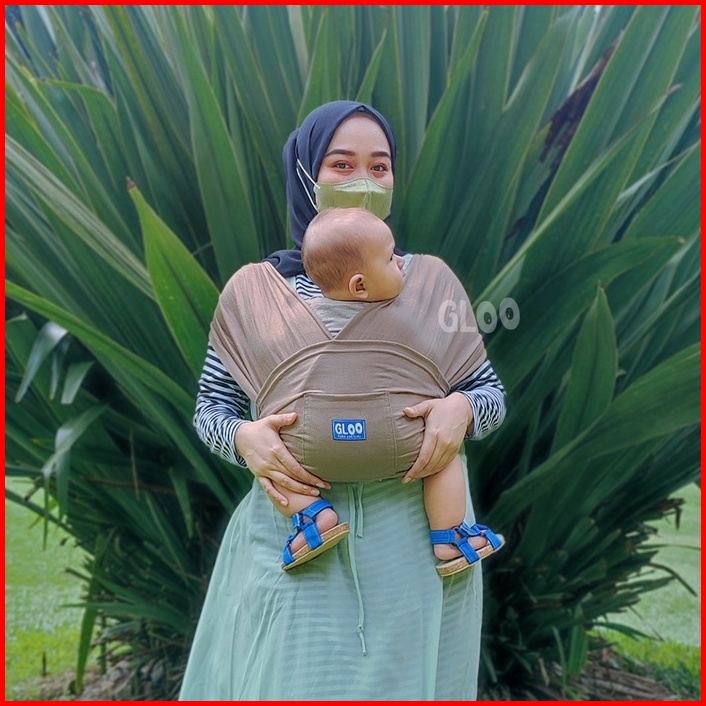 Gendongan Bayi Depan M Shape Baby Wrap 3in1 Geos Baby Premium With Sash Belt Gloo Almond