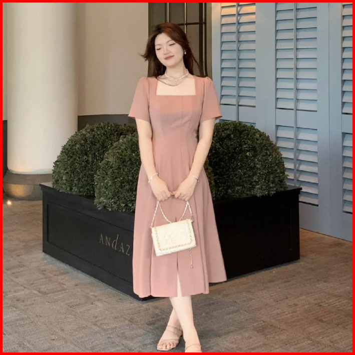 Emita Bloom Baju Long Pink Dress Imlek Merah Wanita Korean Style Kondangan Wedding Dress Simple Elegan Midi Dress Terbar