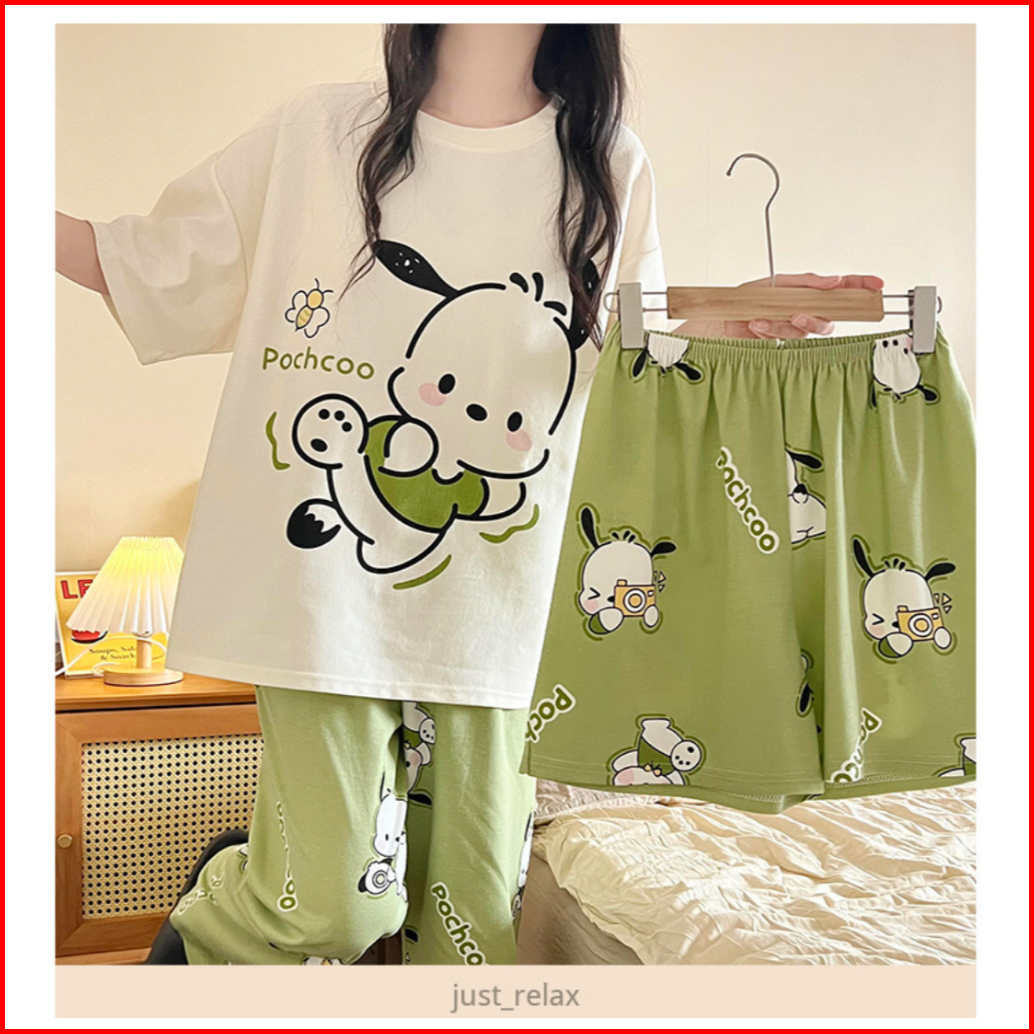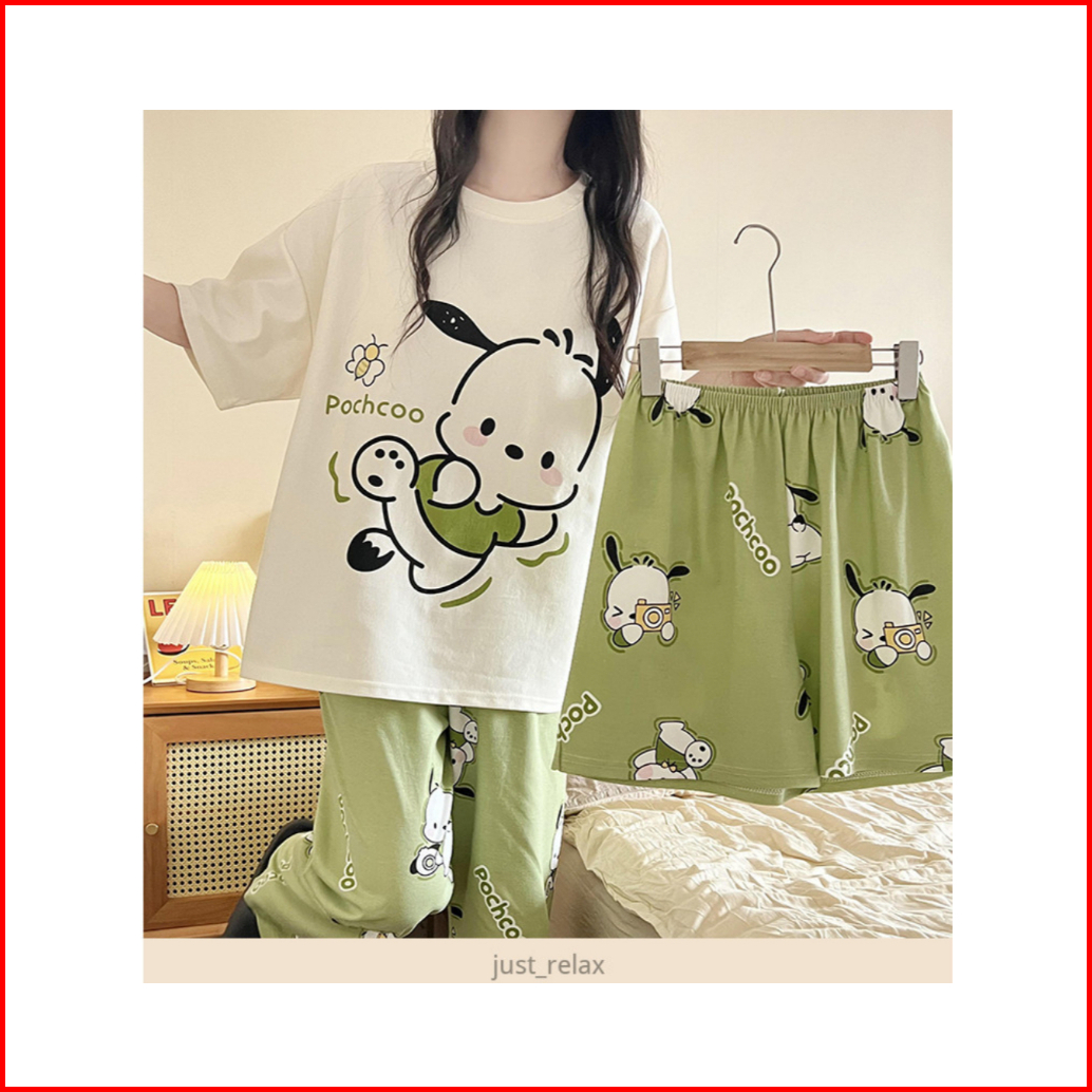 Ratubeli - 3in1 Baju Tidur Wanita Kaos Lengan Pendek Bahan Polyester Adem T023