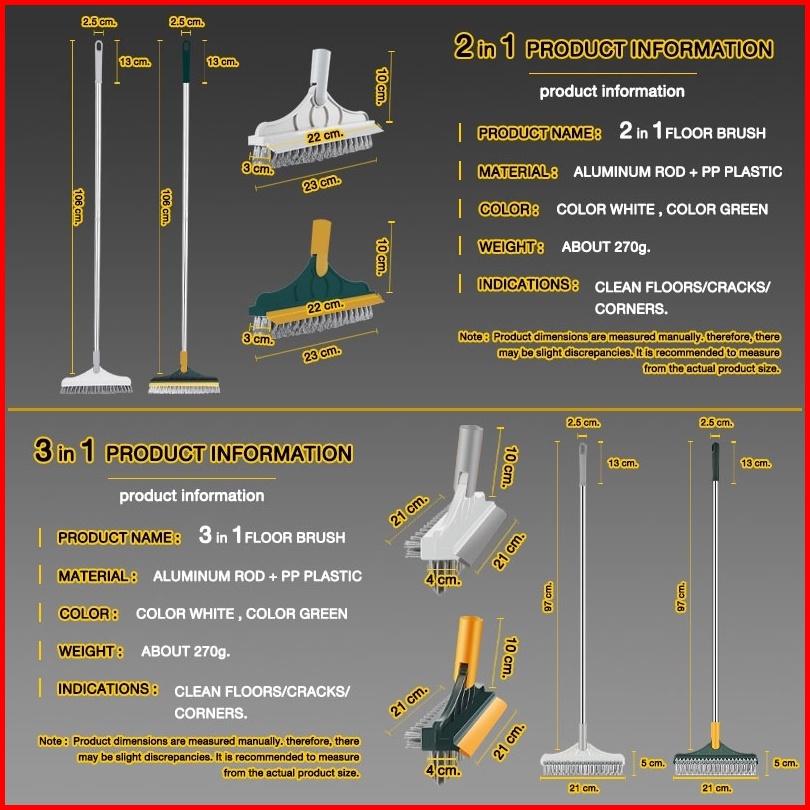 Sikat Lantai Wiper Sikat Lantai Kamar Mandi 2in1 3in1 Pembersih Sudut Lantai Dinding Kamar Mandi Gagang Panjang Sapu Lan