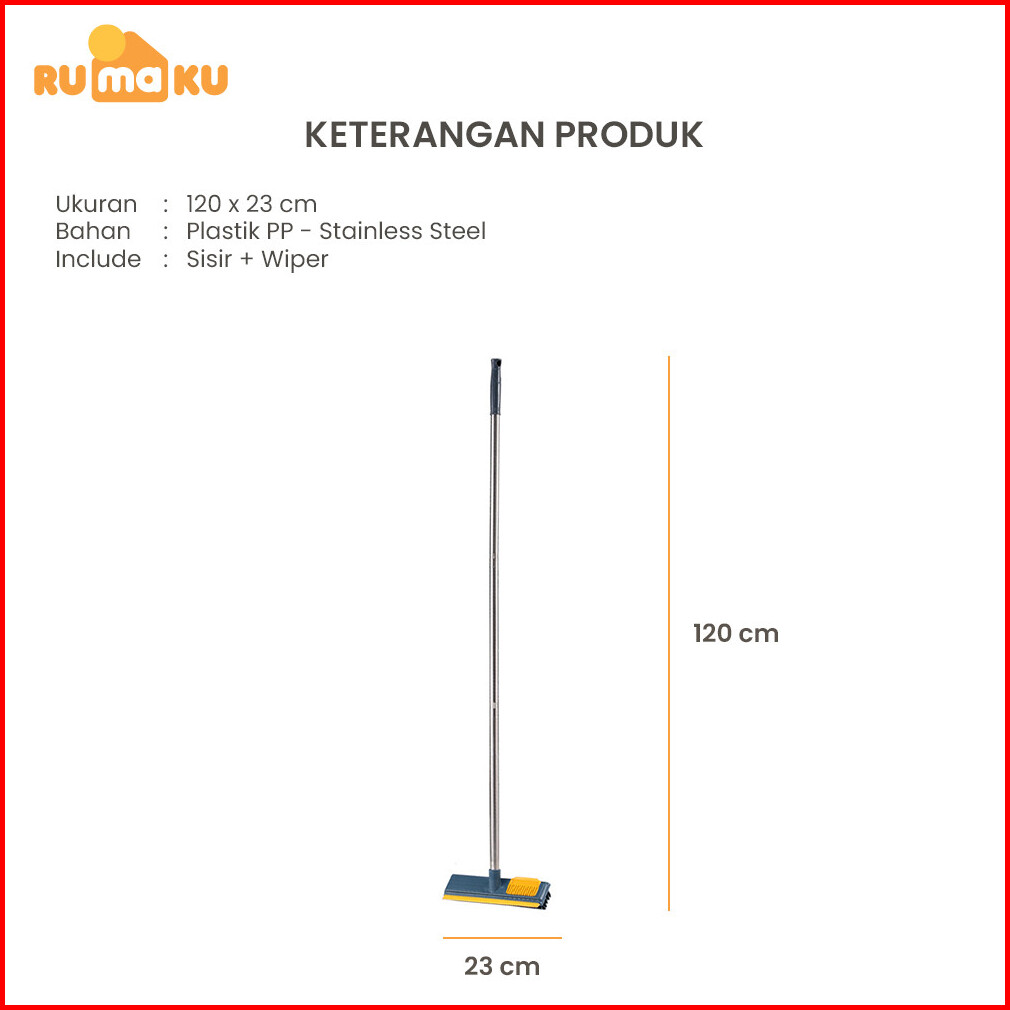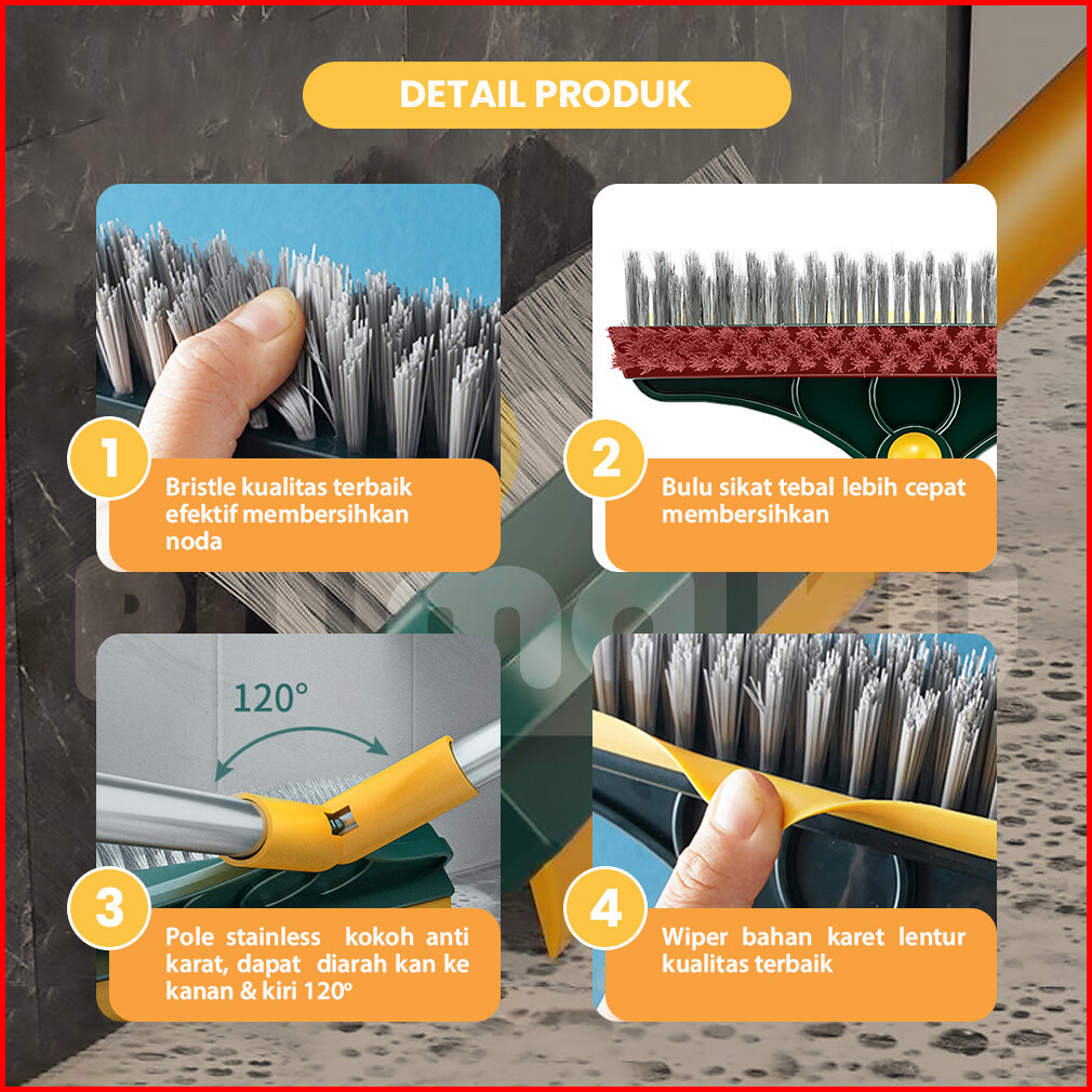Rumaku Sikat Pembersih Lantai Toilet 3in1 Sikat Dorong Kamar Mandi Gagang Panjang Berkualitas