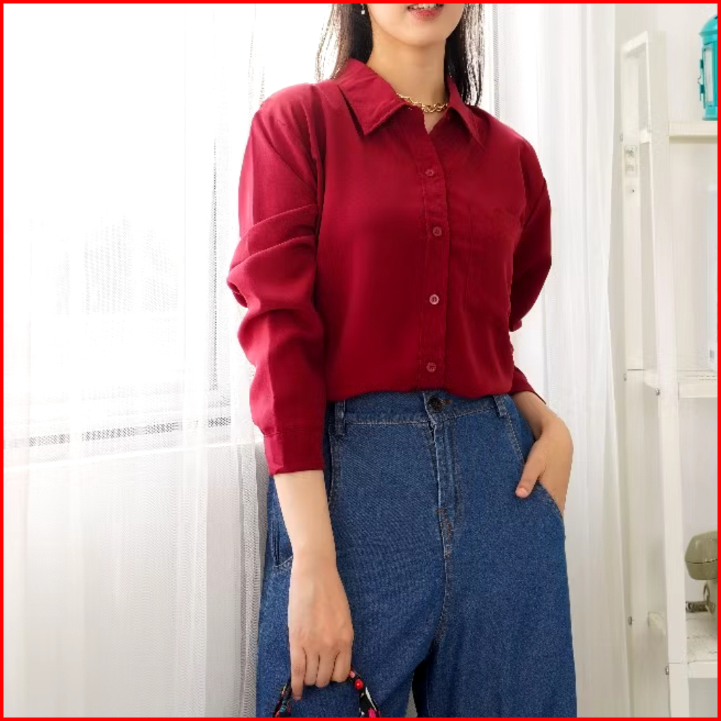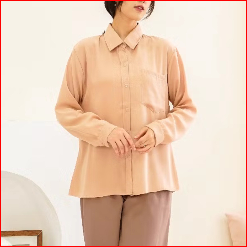 Kemeja Kantong Saku Wanita Formal Polos Wanita Model Korean Lengan Panjang Style By Ortega