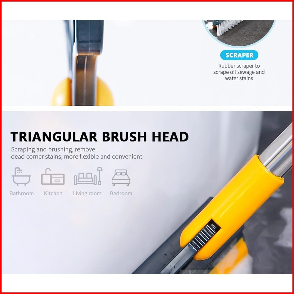 Sikat Gagang Kamar Mandi Alat Wiper Pembersih Lantai 2in1 Three Angle Untuk Membersih Kan Sudut Dan Kaca