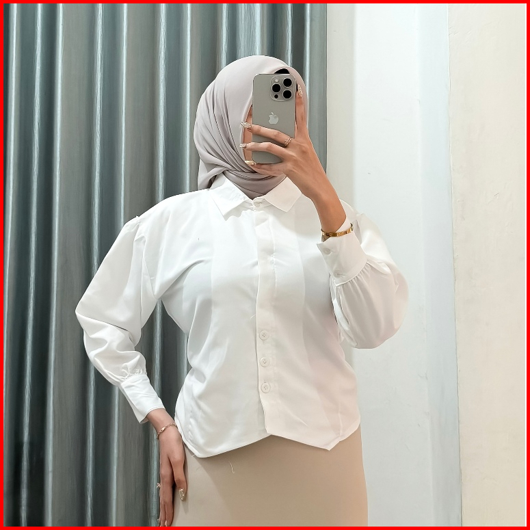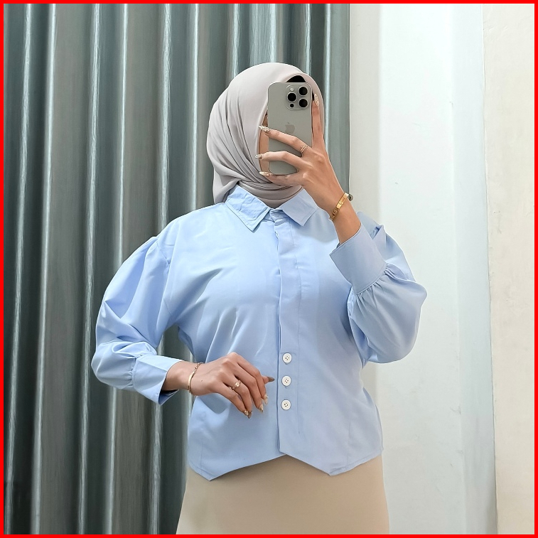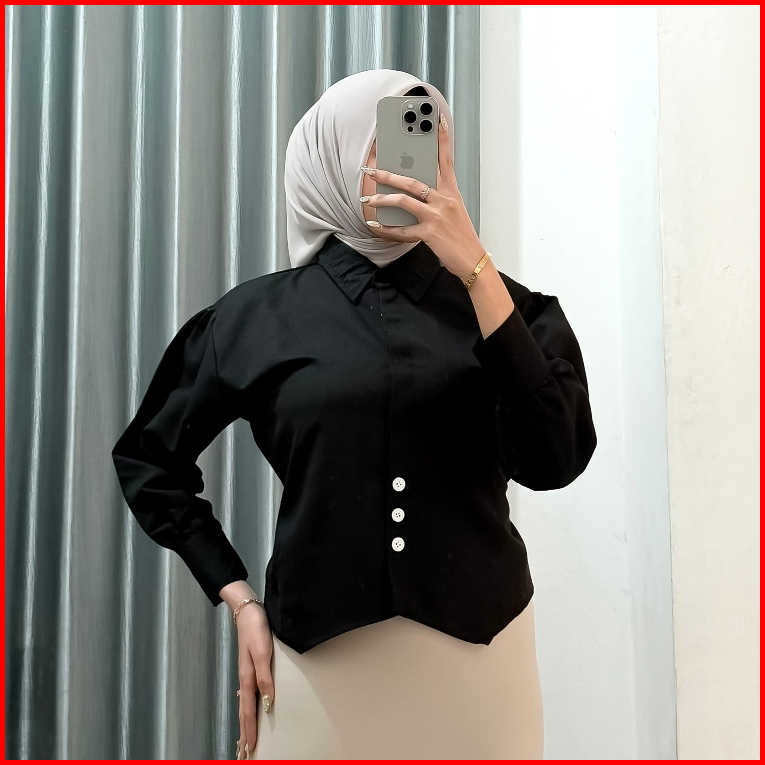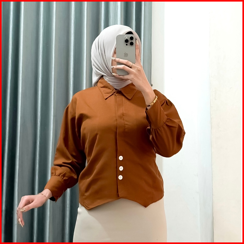 Shanju Blouse - Blouse Wanita Korean Style - Kemeja Crop Lengan Panjang - Atasan Wanita